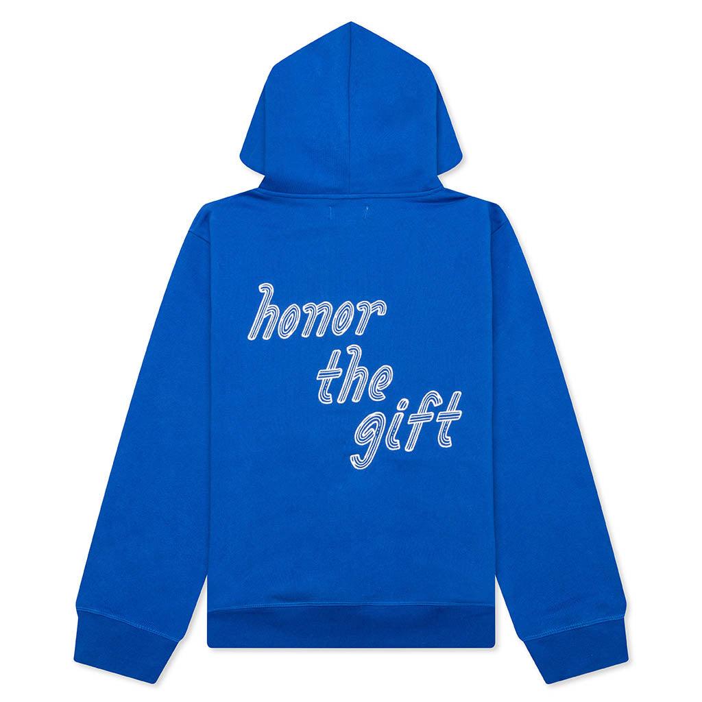 The Cursive Honor Hoodie from Honor The Gift is made from French terry construction, providing warmth and comfort. Featuring a 2-ply hood, kangaroo pocket, and ribbed trims. Embroidered cursive branding at the chest and across the back ties the look together with timeless style. 490GSM French Terry 2-ply hood Ribbed cuffs & hem Kangaroo pocket Embroidered branding Style No: HTG250252-BLU HTG250252 BLUE