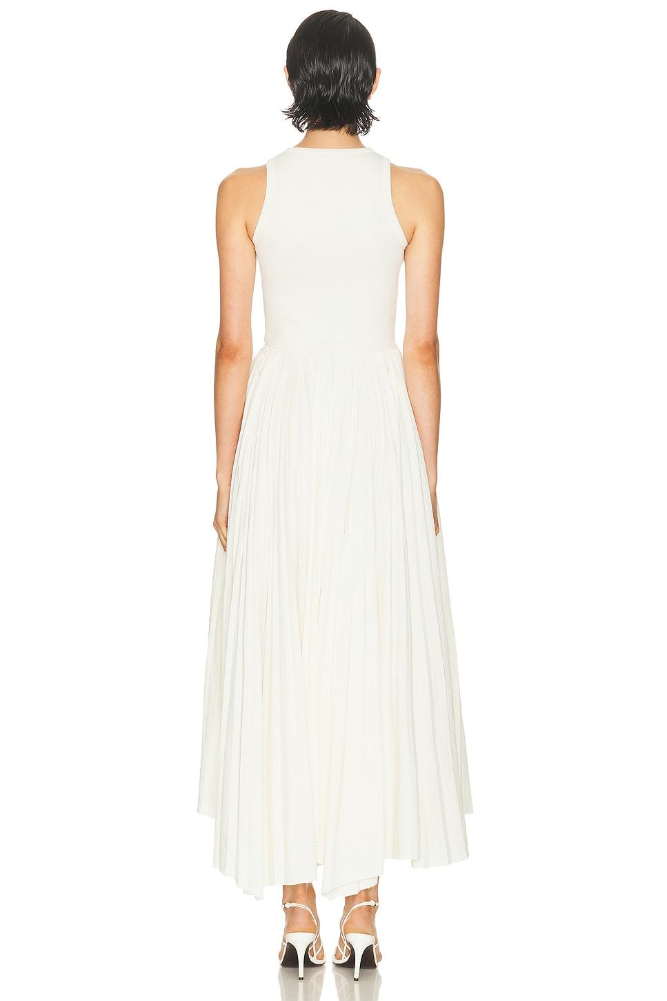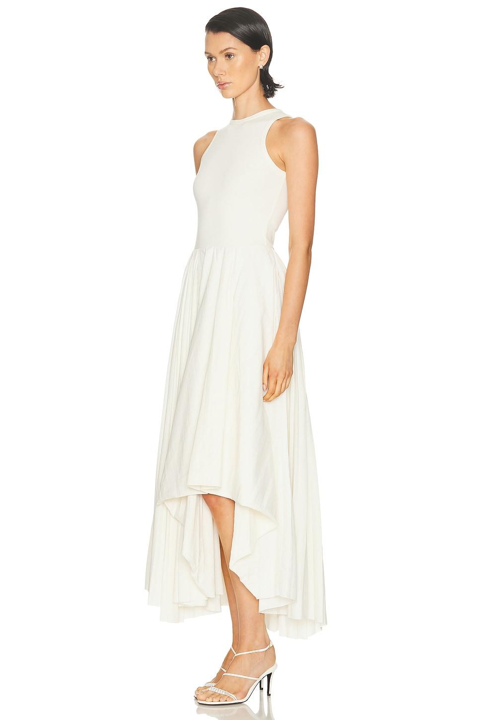 dressSelf: 100% cottonSelf 2: 57% woven paper, 43% viscose / Made in Italy / Dry clean only / Unlined / Hidden side zipper closure / Stretch jersey bodyContrast woven skirt with pleats / Draped pleated skirt / Raw edge hem at skirt / Our Style No. AMCQ-WD233 / Manufacturer Style No. 814517-QLAED-9015 / Model is wearing size 38.