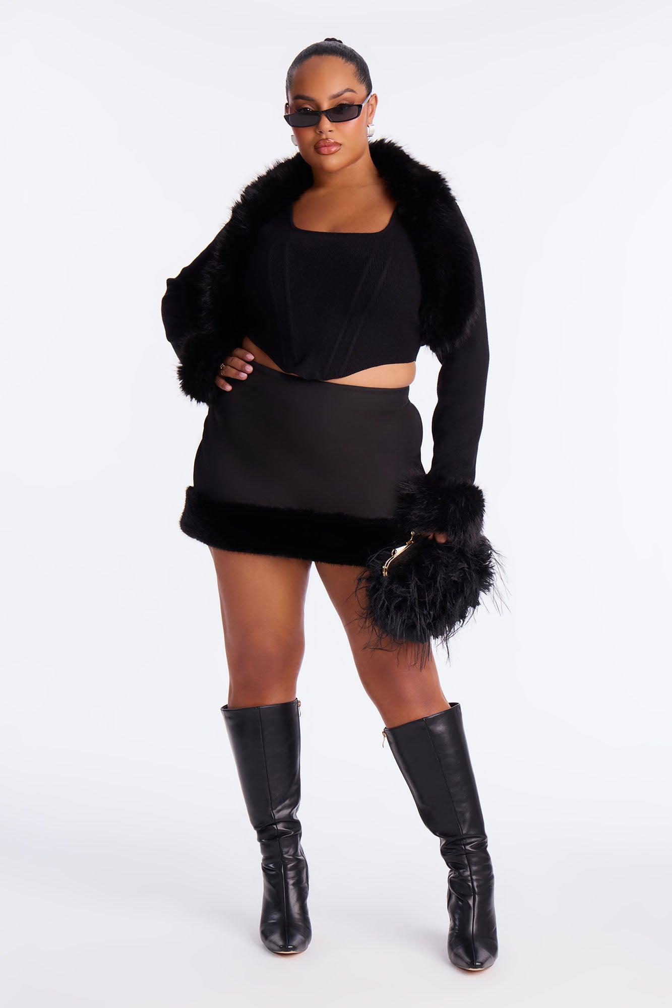 Cute And Cozy Wool Faux Fur Trim Mini Skirt - Black Female