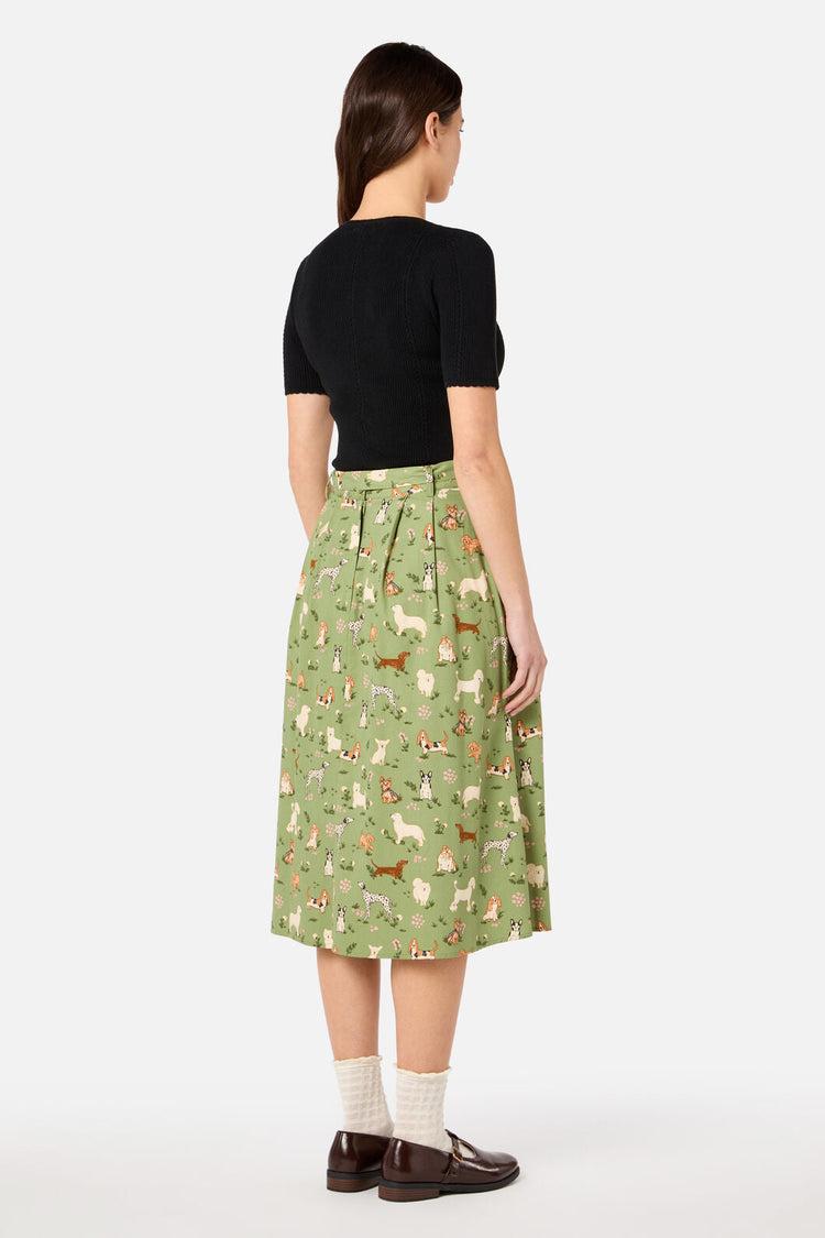 Let your love for pups shine with the Cute Dogs Midi Skirt by Princess Highway. Featuring an all-over print of the most adorable dogs around, this A-line midi is full of charm and personality. Designed with soft tucks, a removable waist tie, and practical pockets, it’s a feel-good wardrobe favourite for any dog lover.A-line silhouette with tuck detailingMidi length — finishes below the kneeRemovable waist tie with belt loopsBack zip and button closureAll-over cute dog printMade from a smooth cotton-viscose blendAvailable in greenFabric & Care61% Cotton, 39% ViscoseCold delicate machine washWash garment inside out with like coloursDo not wring or spinDo not bleach or soakDo not tumble dryLine dry in shadeCool iron on reverse if requiredDo not dry clean