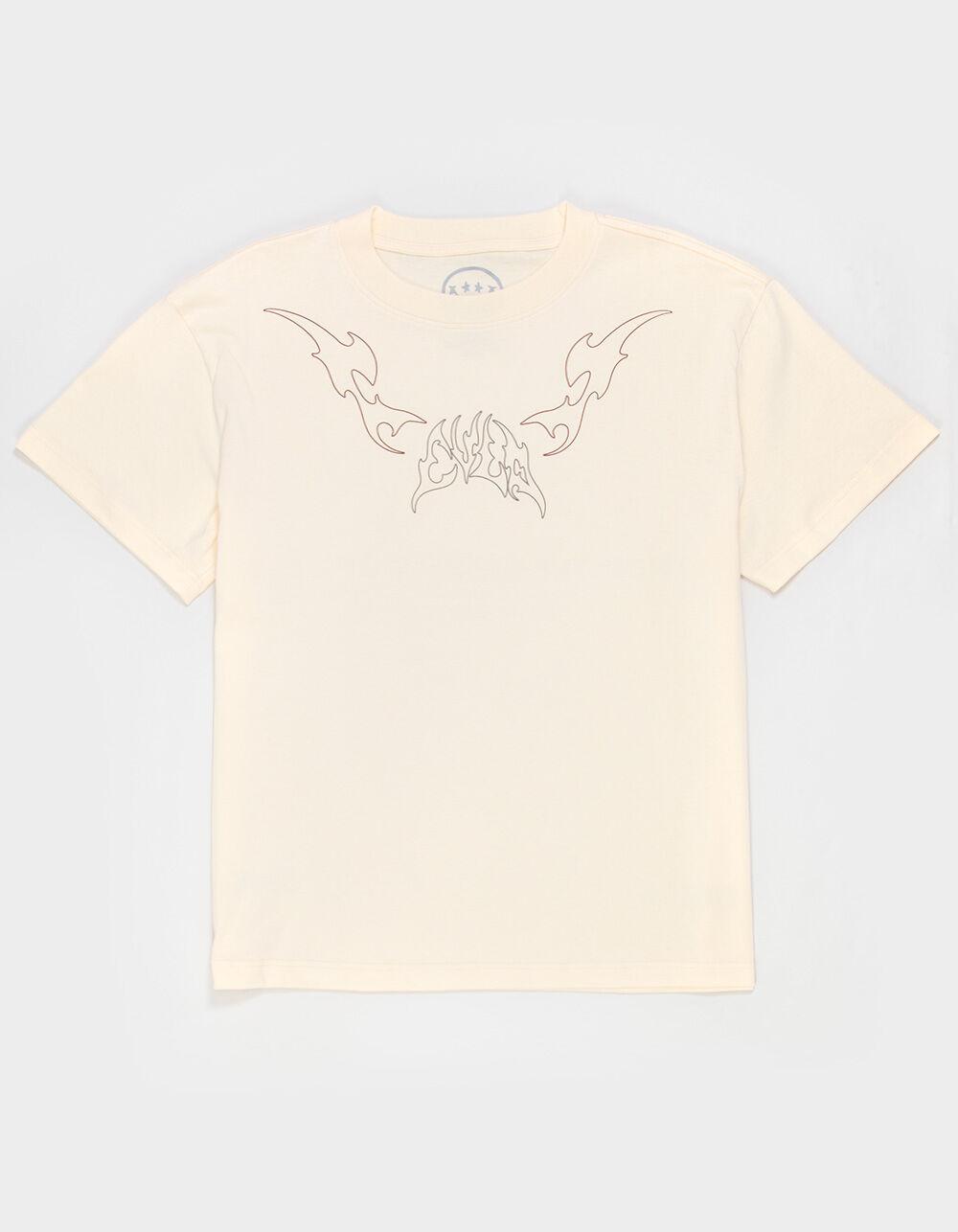 CVLA Cyber Eternal Boxy Tee. Graphic screened on front. Large graphic on back. Boxy fit. Crew neck. Short sleeve. 100% Cotton. Machine wash. Imported.