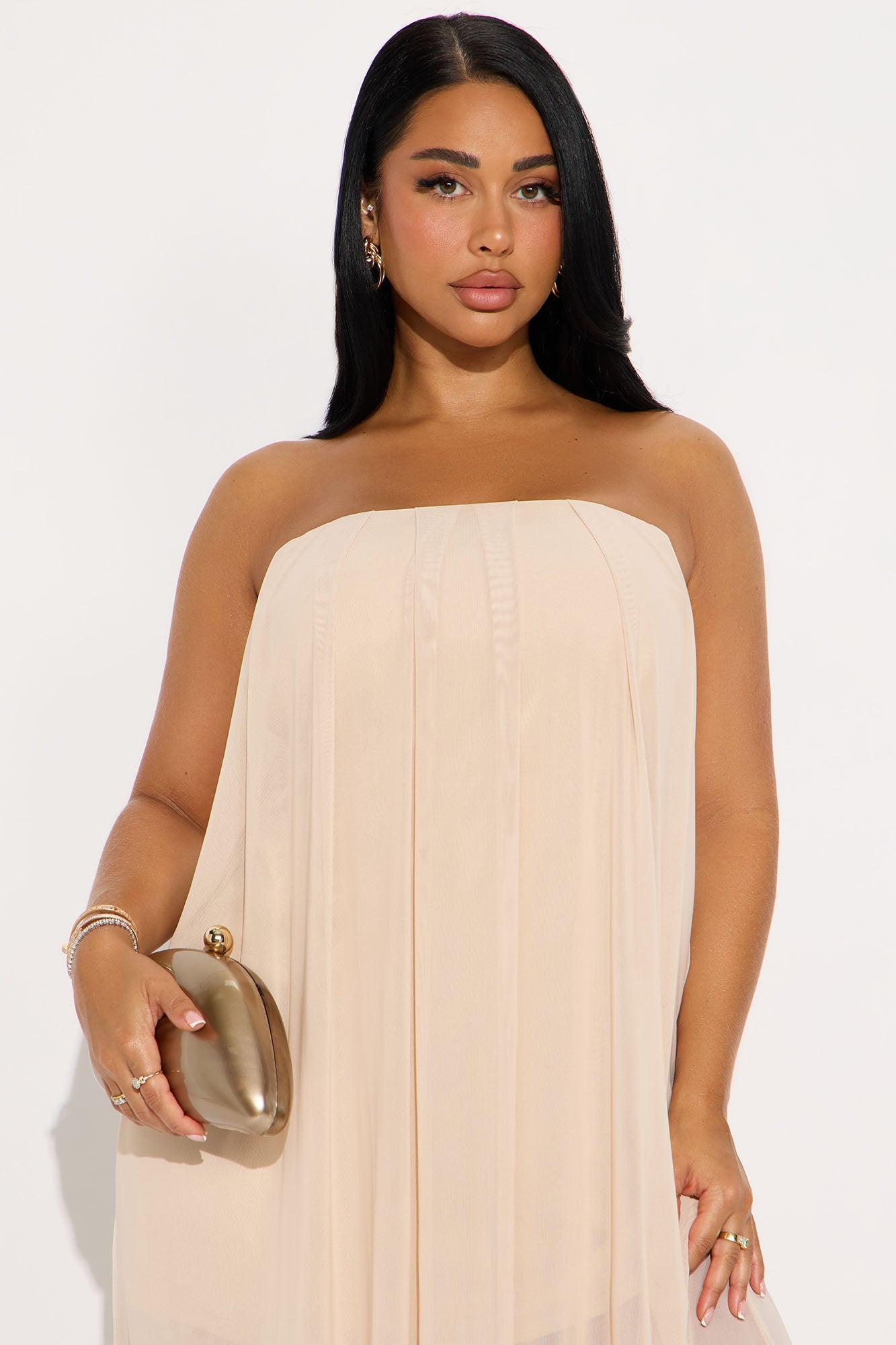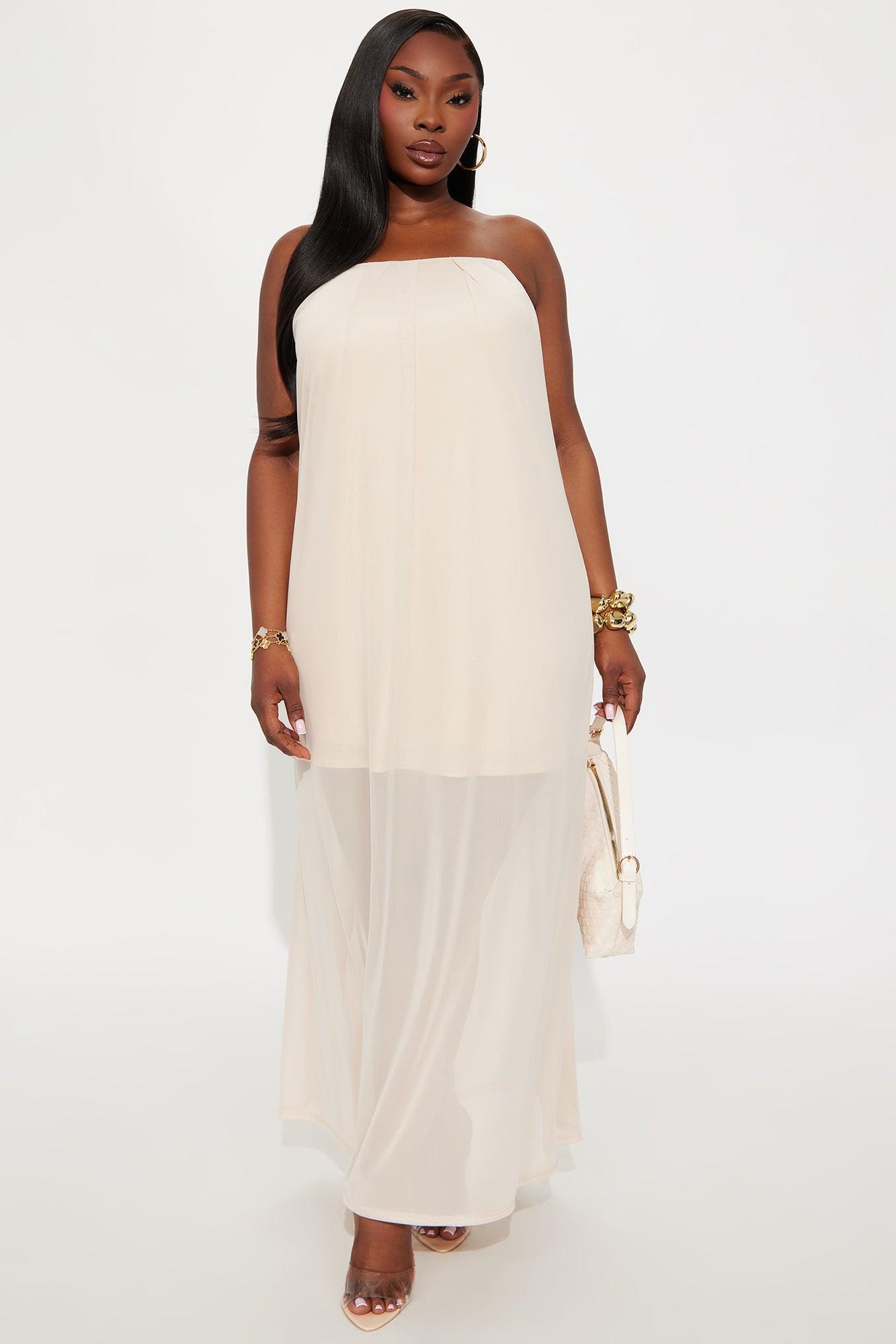 Cynthia Strapless Mesh Flowy Maxi Dress - Cream Female