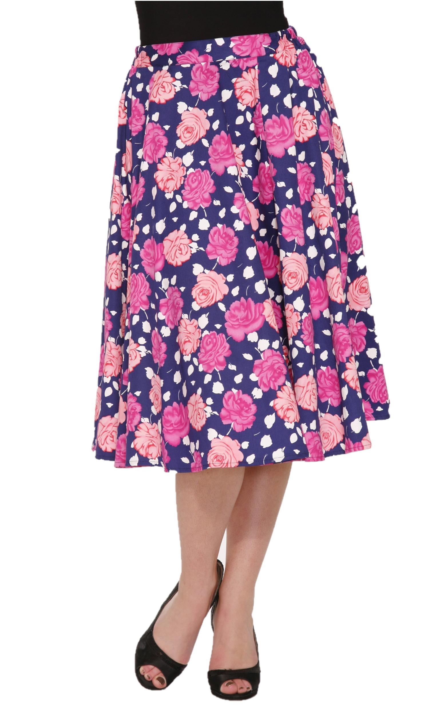 A garden party in skirt form, the Cynthia Swing Skirt from Orchid Bloom brings blooming brilliance to your wardrobe. With vibrant pink florals set against a rich navy backdrop, this vintage-inspired beauty is crafted in soft cotton with a hint of stretch for a flattering, comfortable fit. Twirl-ready and timeless, it’s a floral dream come true.Details:By Orchid Bloom97% Cotton, 3% Spandex – fabric provides stretchCenter back zipperLength: 28"ImportedMachine wash cold, tumble dry low or hang to air-dry