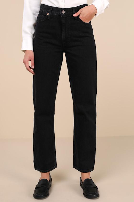 The Levi's Dad Black Denim High-Rise Jeans are the perfect piece to create casually cool looks are year round! Sturdy cotton denim (in Levi's Rosie Poise wash) shapes these '90s-inspired jeans that feature a high-rise silhouette with belt loops, a classic five-pocket cut, and a branded top button closure above a hidden zipper fly. Straight, relaxed-fit legs finish at ankle-length hems. Red logo tab and leather logo patch at back.