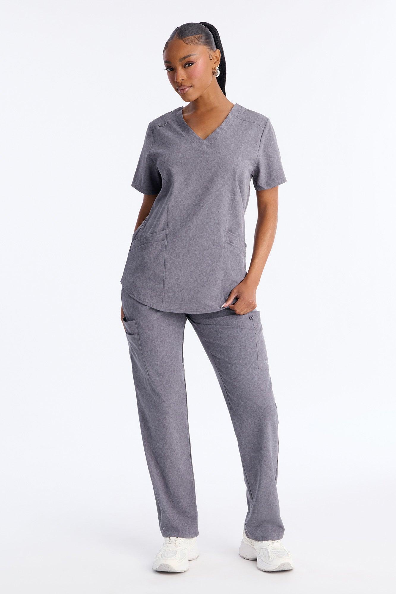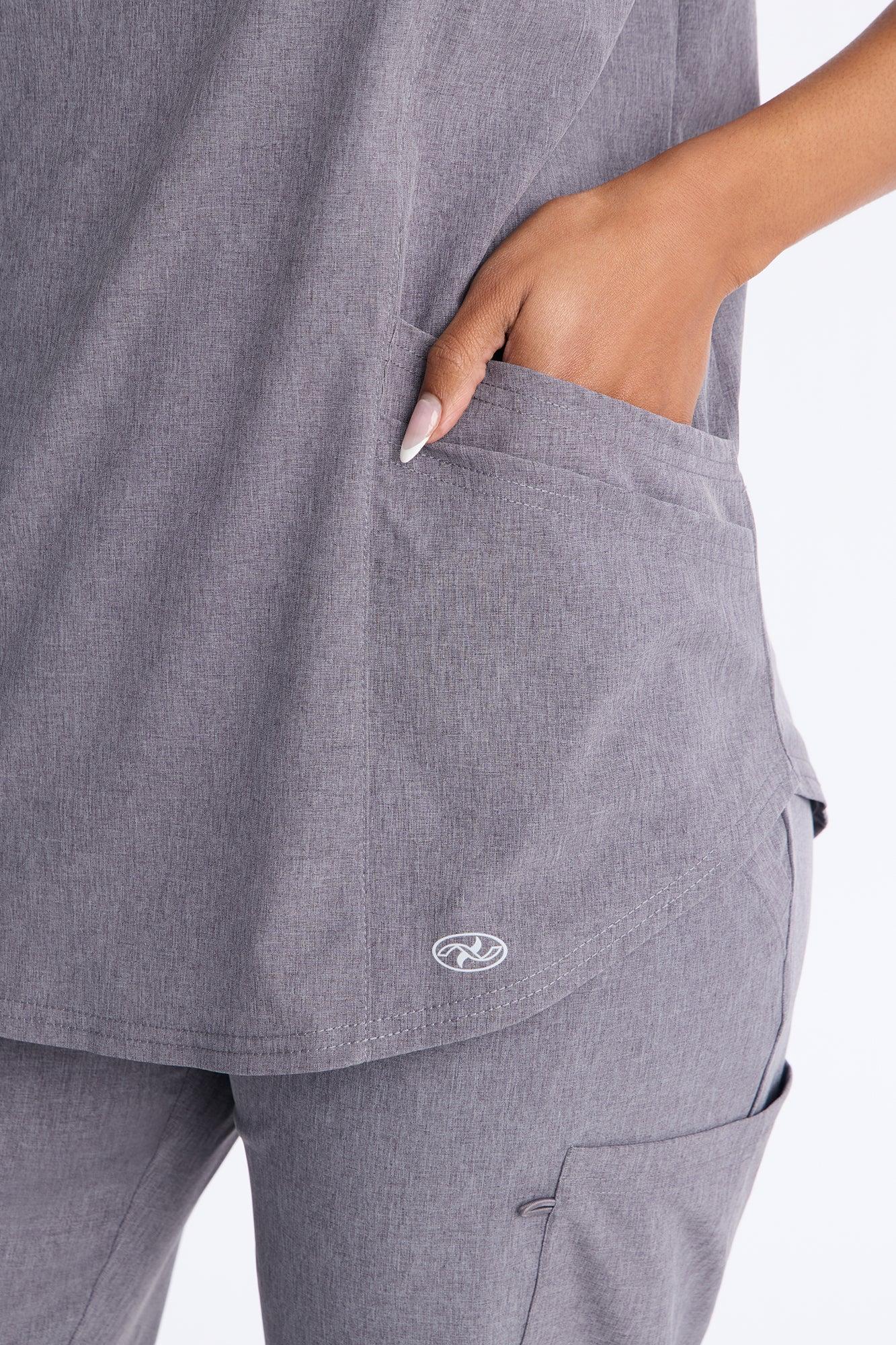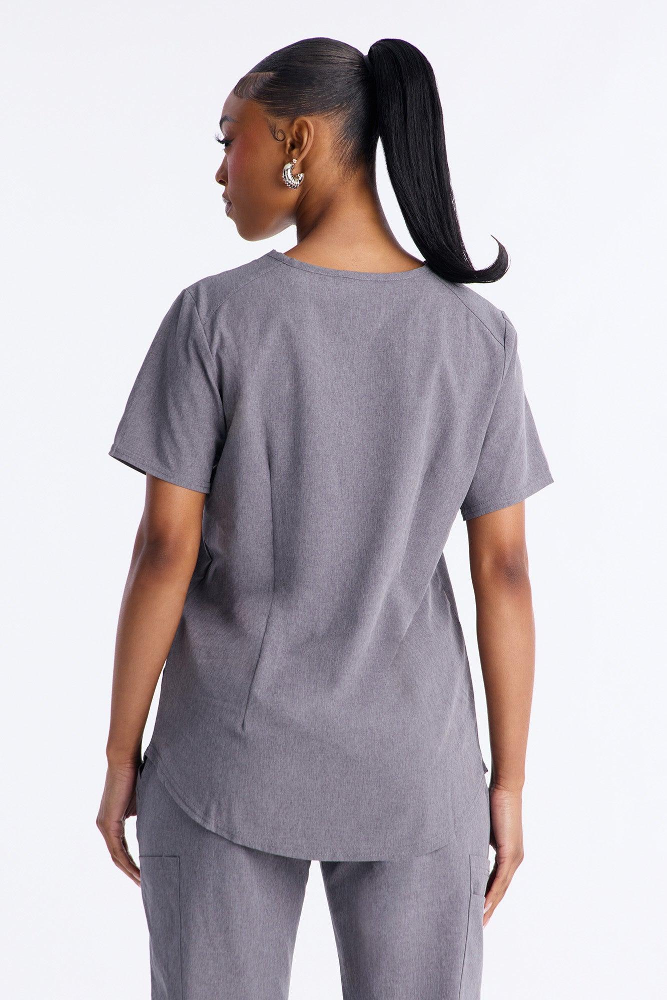Daily Dose Stretch V Neck Front Pocket Scrub Top - Charcoal Female