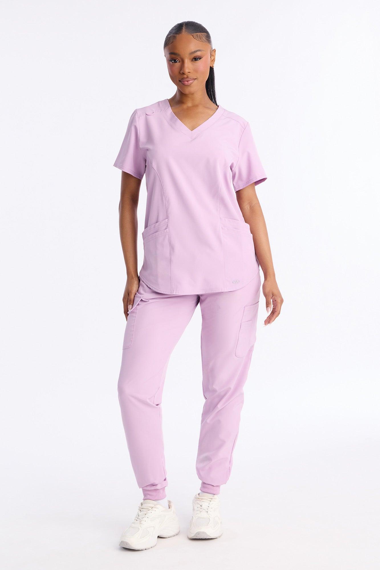 Daily Dose Stretch V Neck Front Pocket Scrub Top - Magenta Female
