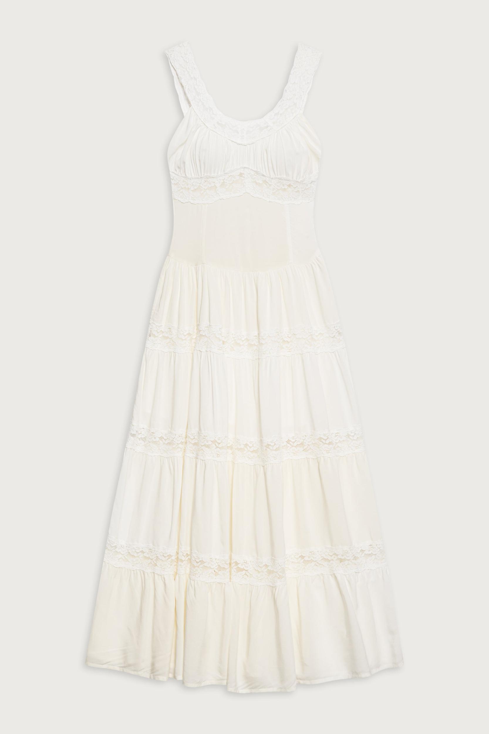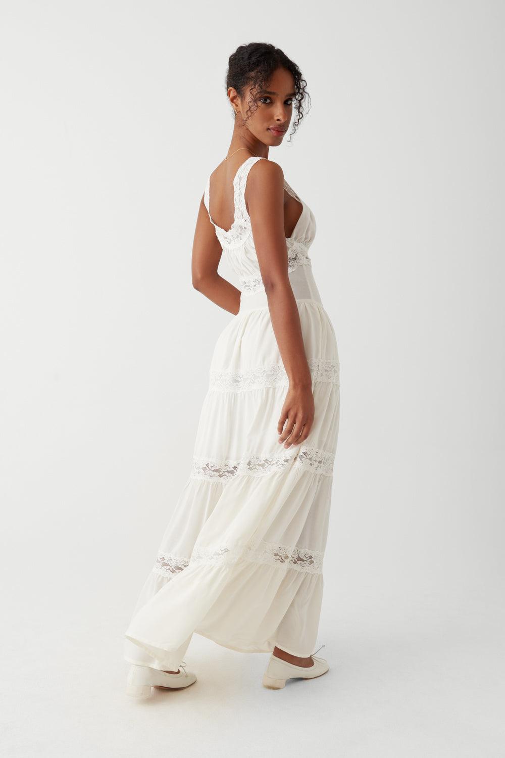 The Dakota maxi is our Founder's new favorite dress, embodying comfort in its ultra-soft fabric. This vintage slip-inspired dress showcases elegant tiers, lace inserts, and a ruched bust, creating a beautifully feminine silhouette. Fabric 100% Rayon Challis Model Size & Fit This style runs true to size Eileen is wearing a size Small Height 5’9” (175cm) Bust 32” (81.5cm), Waist 25.5" (65cm), Hips 35" (89cm)