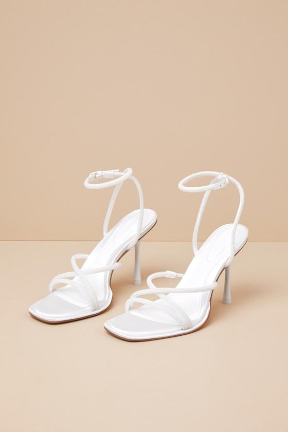 Sensational ensembles just wouldn't be the same (or as shiny) without the D'Amelio Footwear Dalilah Off White Satin Pearl Ankle Strap High Heel Sandals! Sleek woven satin shapes these standout heels with a square footbed, a strappy crisscrossing vamp, and an open-toe design. Slender straps sprout from the sides that wrap and secure around the ankle with a matching white buckle. Gleaming faux pearl beads throughout add an extra dazzling touch, while a sexy stiletto heel finishes the look!
