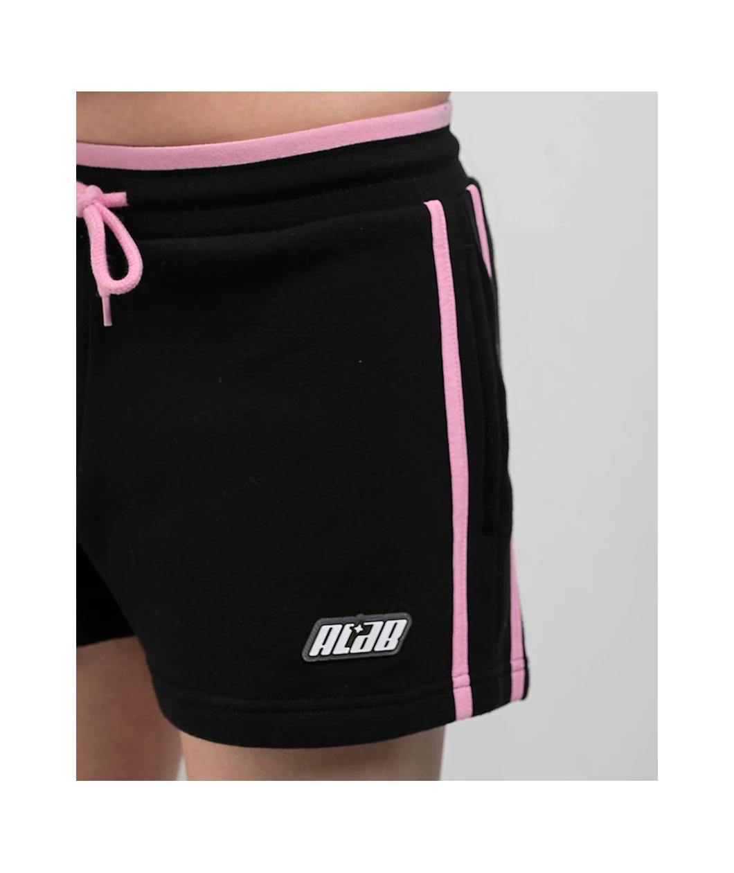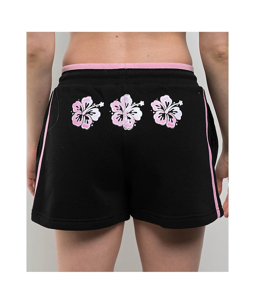 Bringing comfort together with style, A.LAB presents the Jana Hibiscus sweat shorts in a solid black cotton blend with embroidered pink accents on the side seams. Drawing attention with three screen-printed, glittery flowers in full bloom on the back