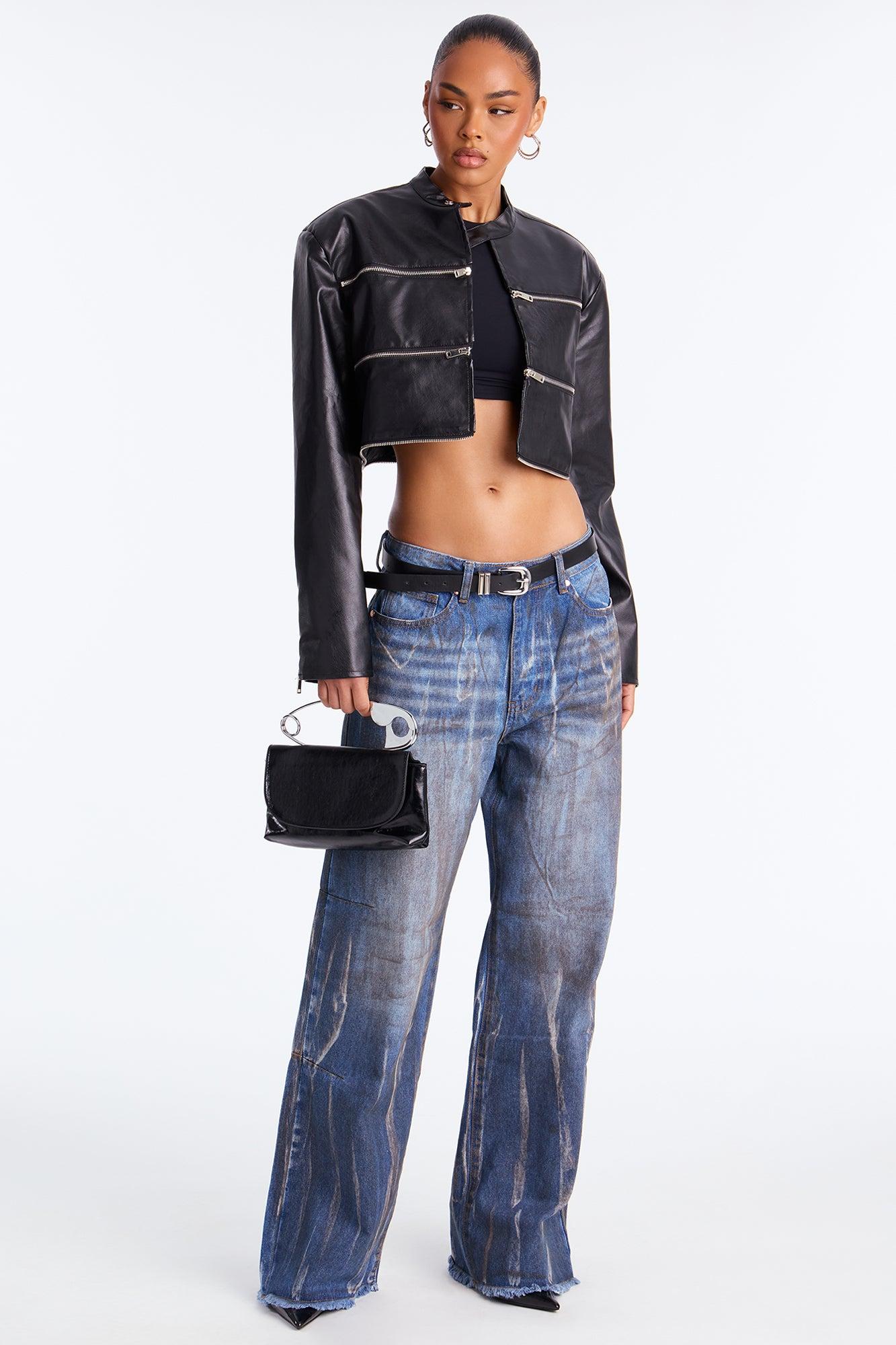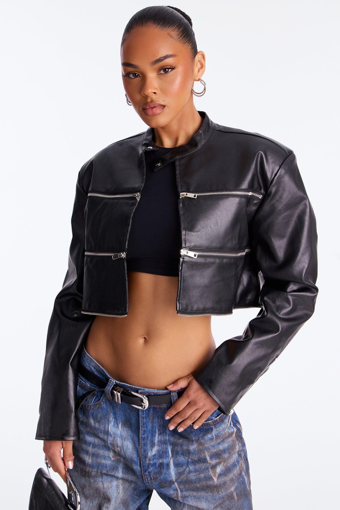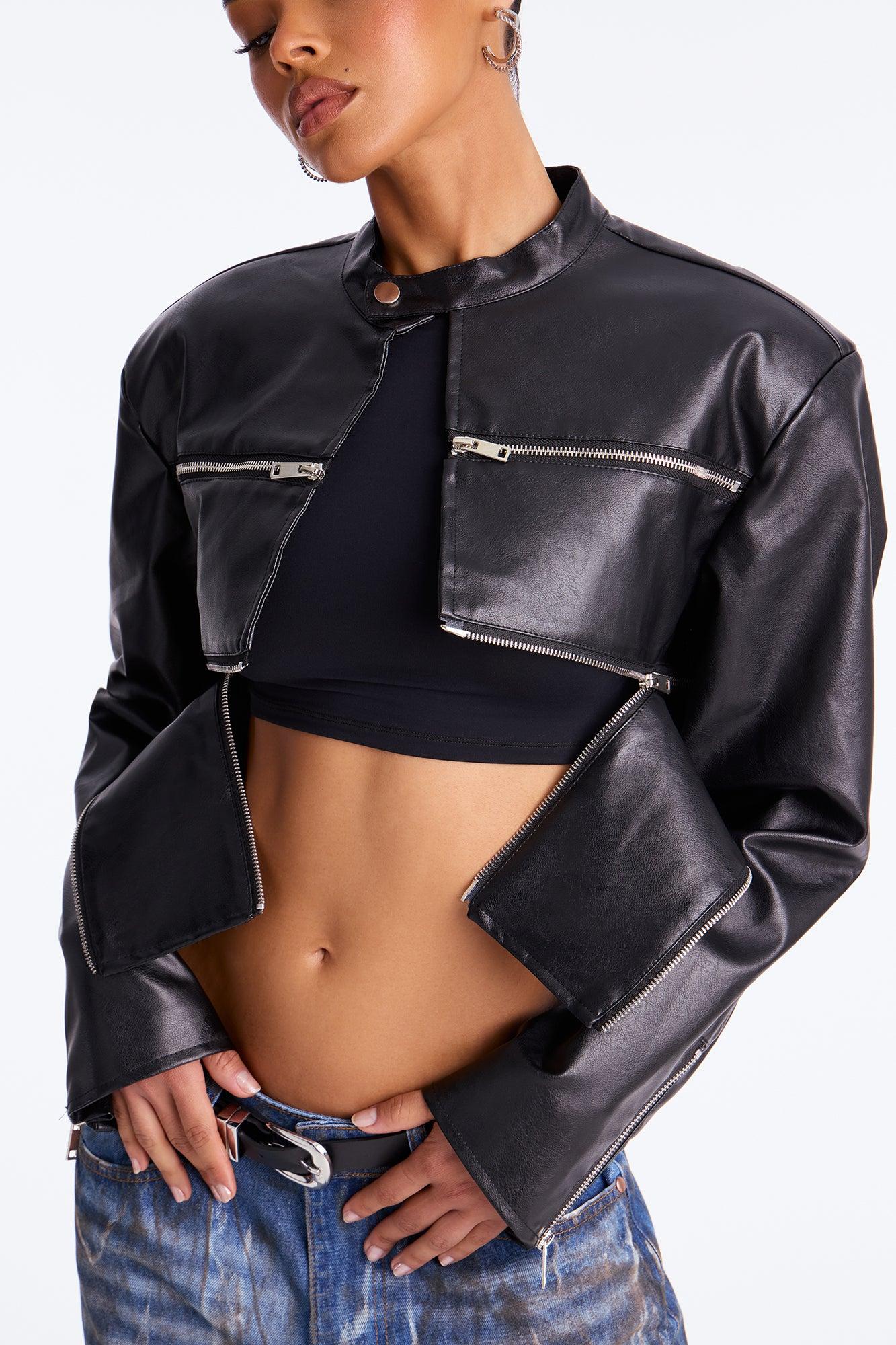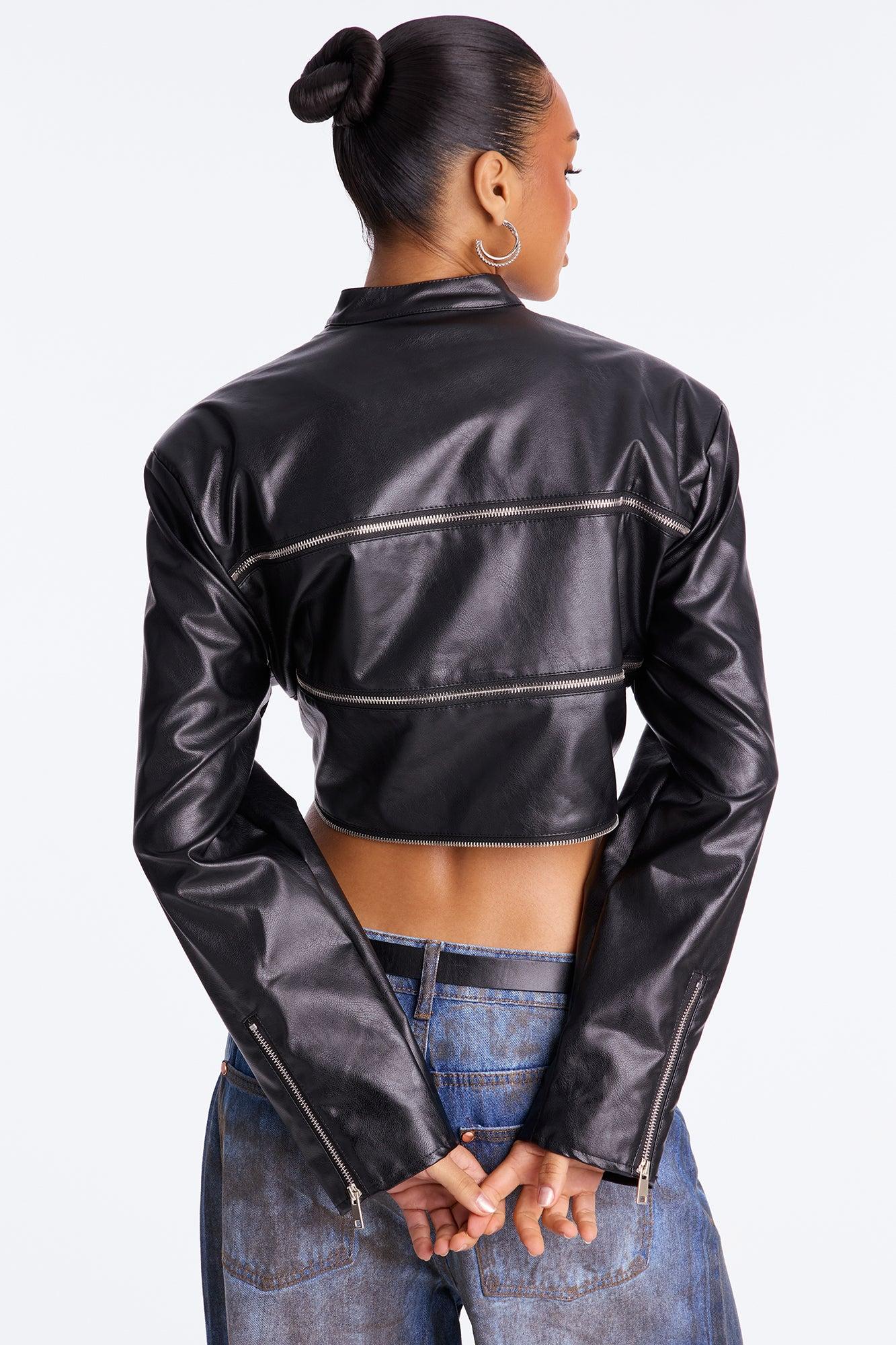 Danger Zone Faux Leather Moto Jacket - Black Female