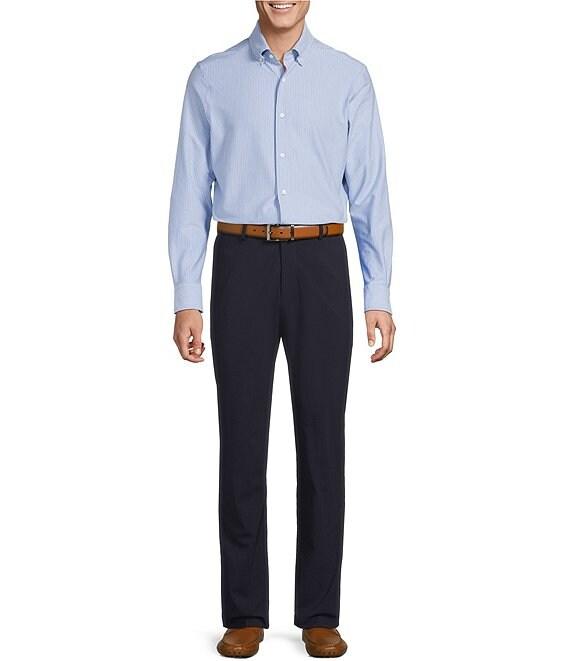 From Cremieux, these pants feature: Solid tone Flat front Classic fit Stretch waistband with Tekfit Extended button-tab waistband with belt loops Full zip closure Front slanted pockets with back button pockets Wrinkle resistant Comfort stretch Stretch recovery Breathable wool Wool/spandex Dry clean Imported.