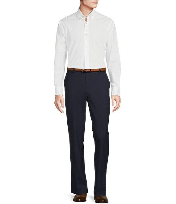 From Daniel Cremieux Signature, these pants feature:Solid tonePerfect Stretch waistband with TekfitExtended waistband with belt loopsZip front/button closureFront slant pockets and back button pocketsFlat frontComfort stretchPolyester/viscoseMachine wash/tumble dryImported.