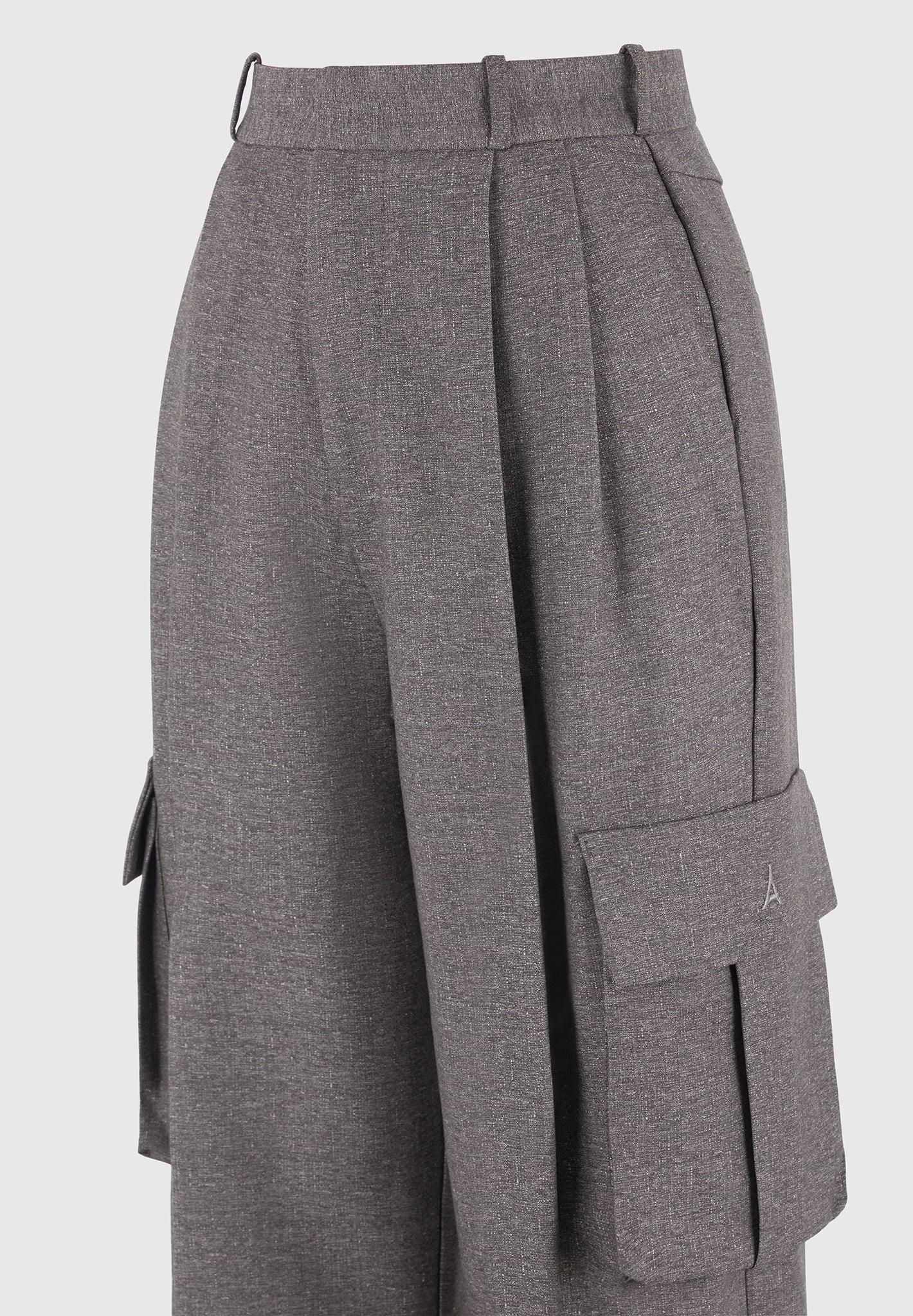 Danielle - Textured Tailored Pleated Cargo Trousers - Grey Marl Female