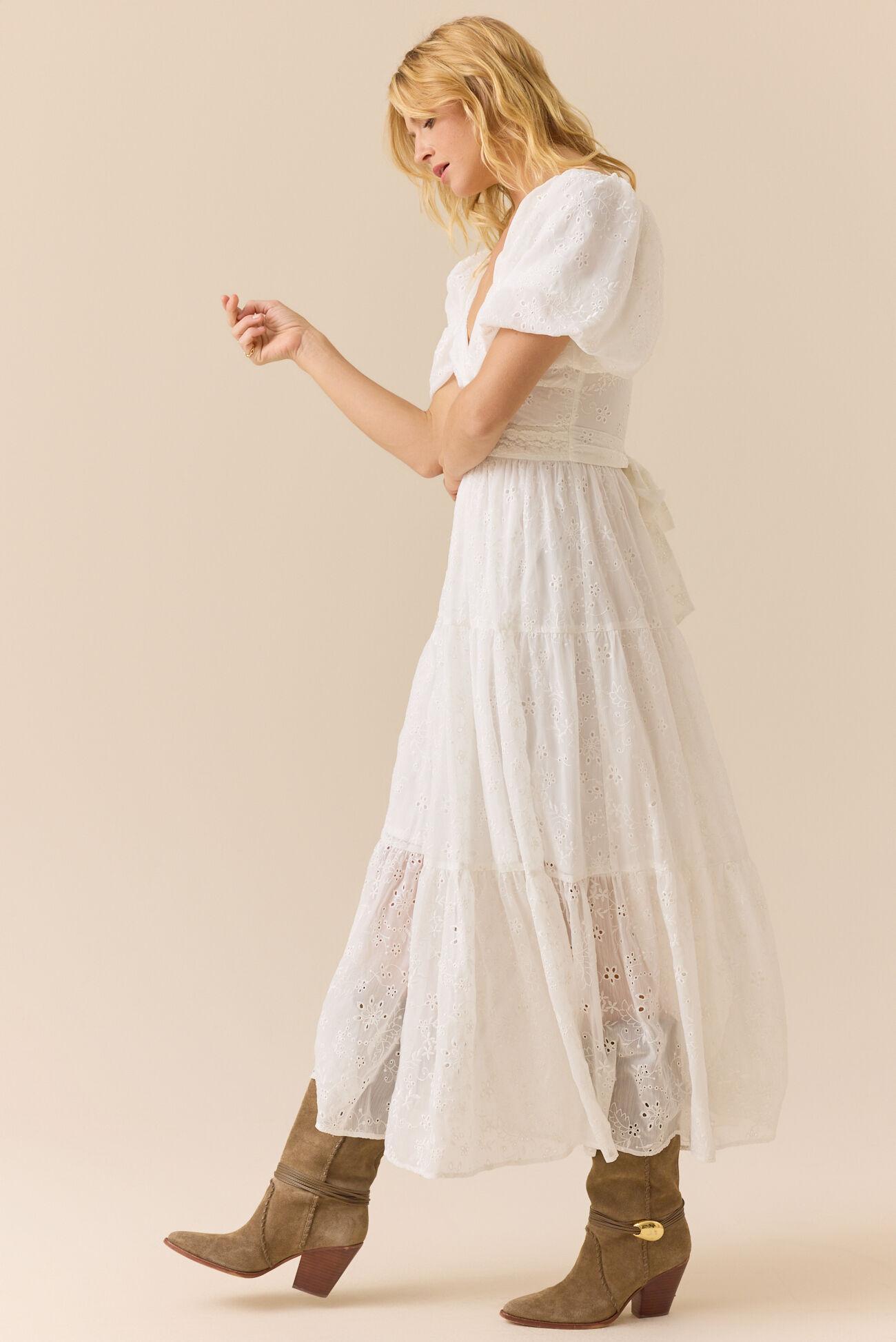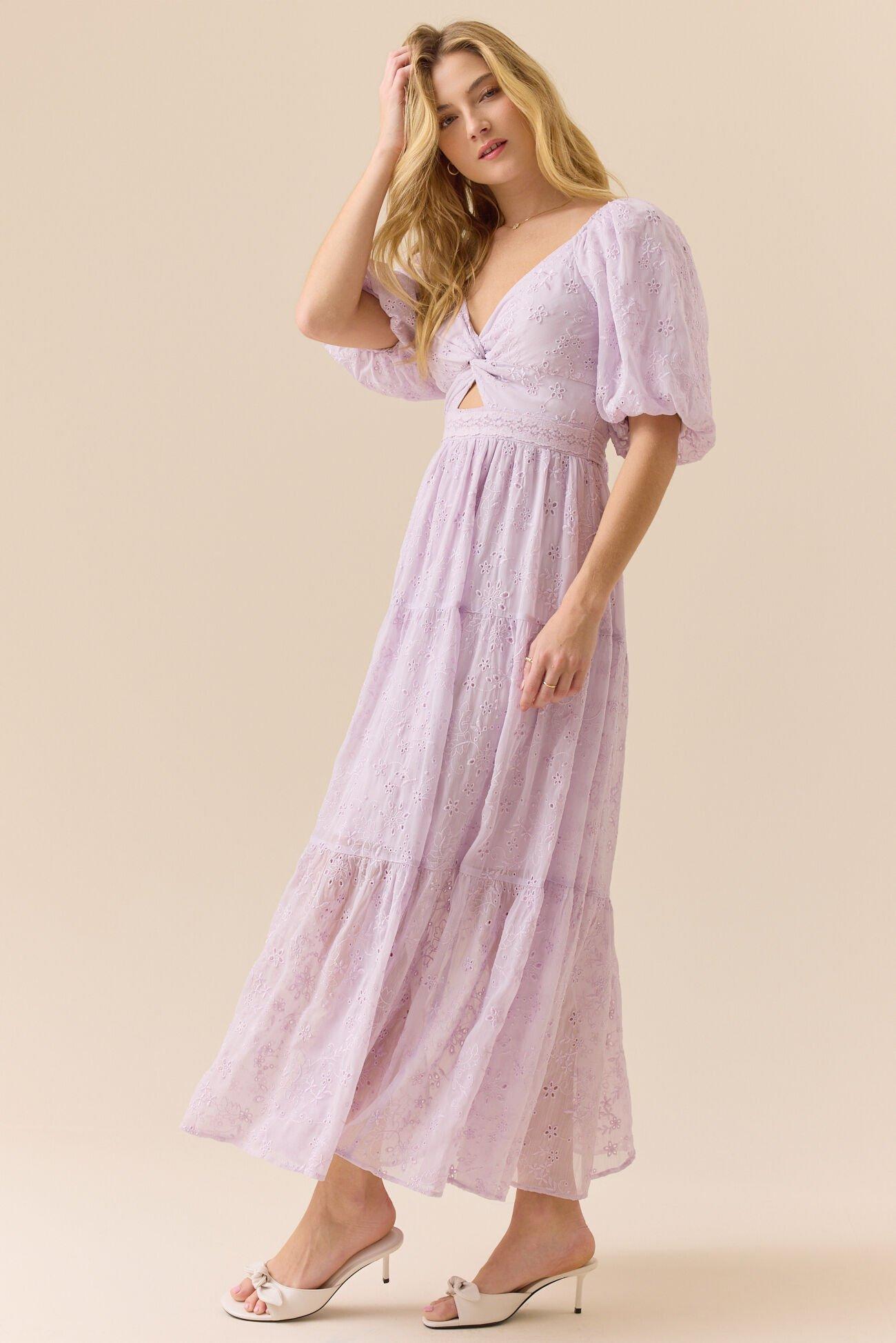 Step into timeless elegance with this puff-sleeve maxi dress, featuring a charming twist detail at the chest for a flattering silhouette. The airy, flowing length and puff sleeves make it perfect for garden parties or special occasions where you want to feel effortlessly feminine and graceful.