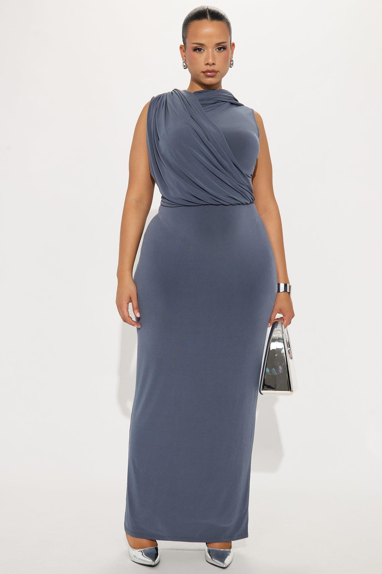 Dare Me Draped Hooded Maxi Dress - Charcoal Female