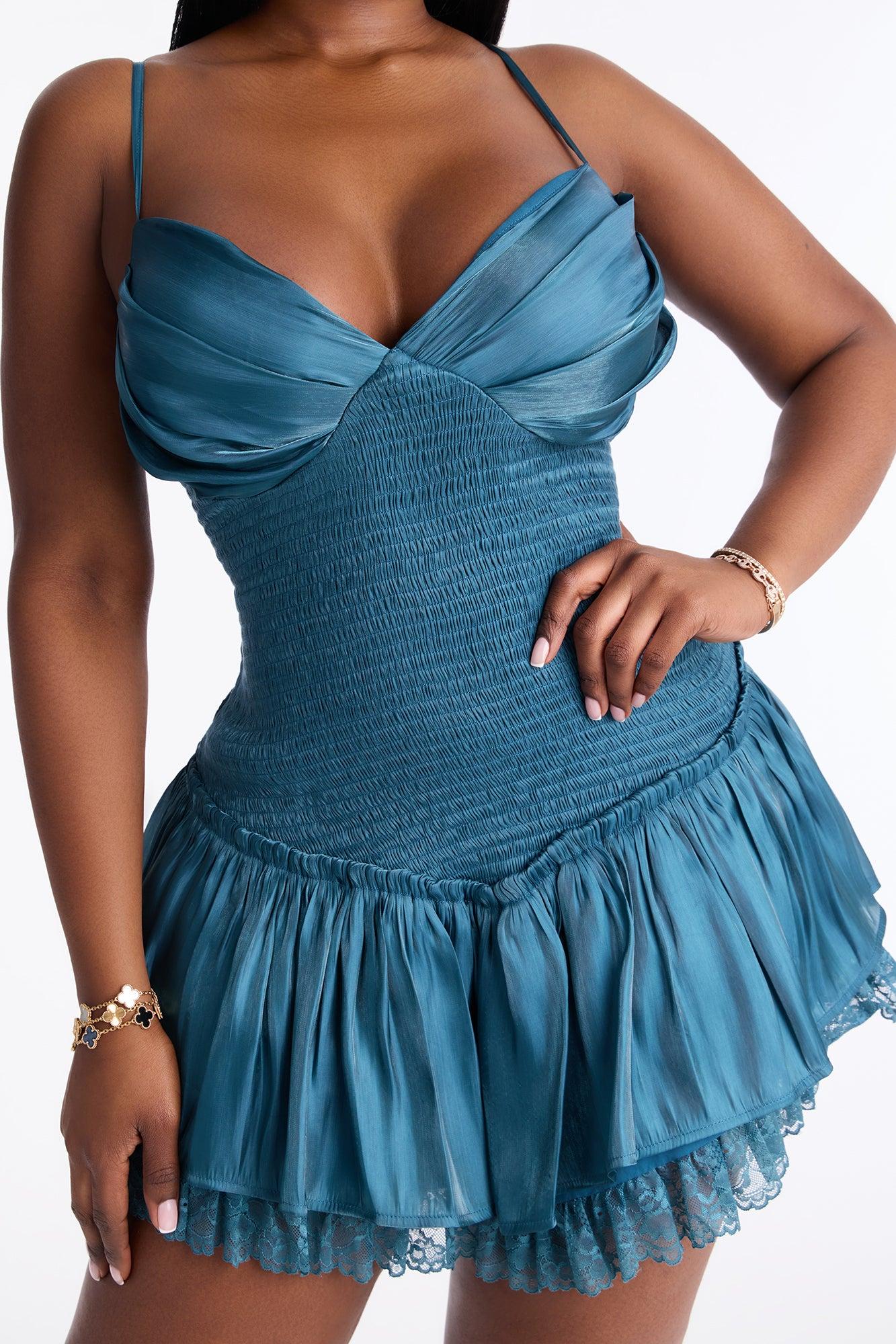 Dariana Cinched Waist Satin Mini Dress - Hunter Female