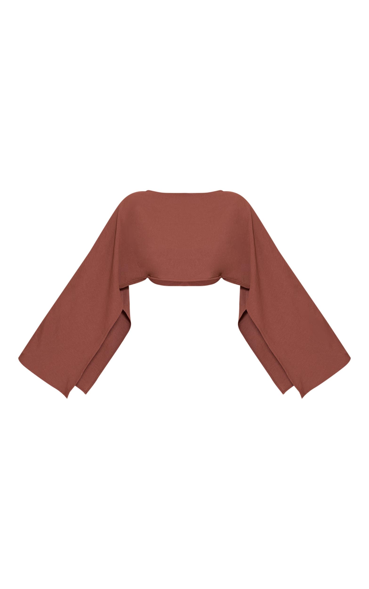Keep it chic in this dark brown floaty woven slash neck long sleeve top. Brought to you in dark brown fabric, this top has long flowing sleeves, an elegant slash neck and a cropped fit. Team it with the matching mini skirt, barely-there heels and your go-to gold earrings for a flawless finish.Length approx 38cm/15inch (Based on sample size US 4)Model wears size UK 8/ EU 36/ AUS 8/ US 4Model Height - 5ft 9inchp]:!mb-4inch>Category: Co-ordsProduct type: Vest TopColor: Dark BrownMaterial: Woven CrepeOccasion: Evening