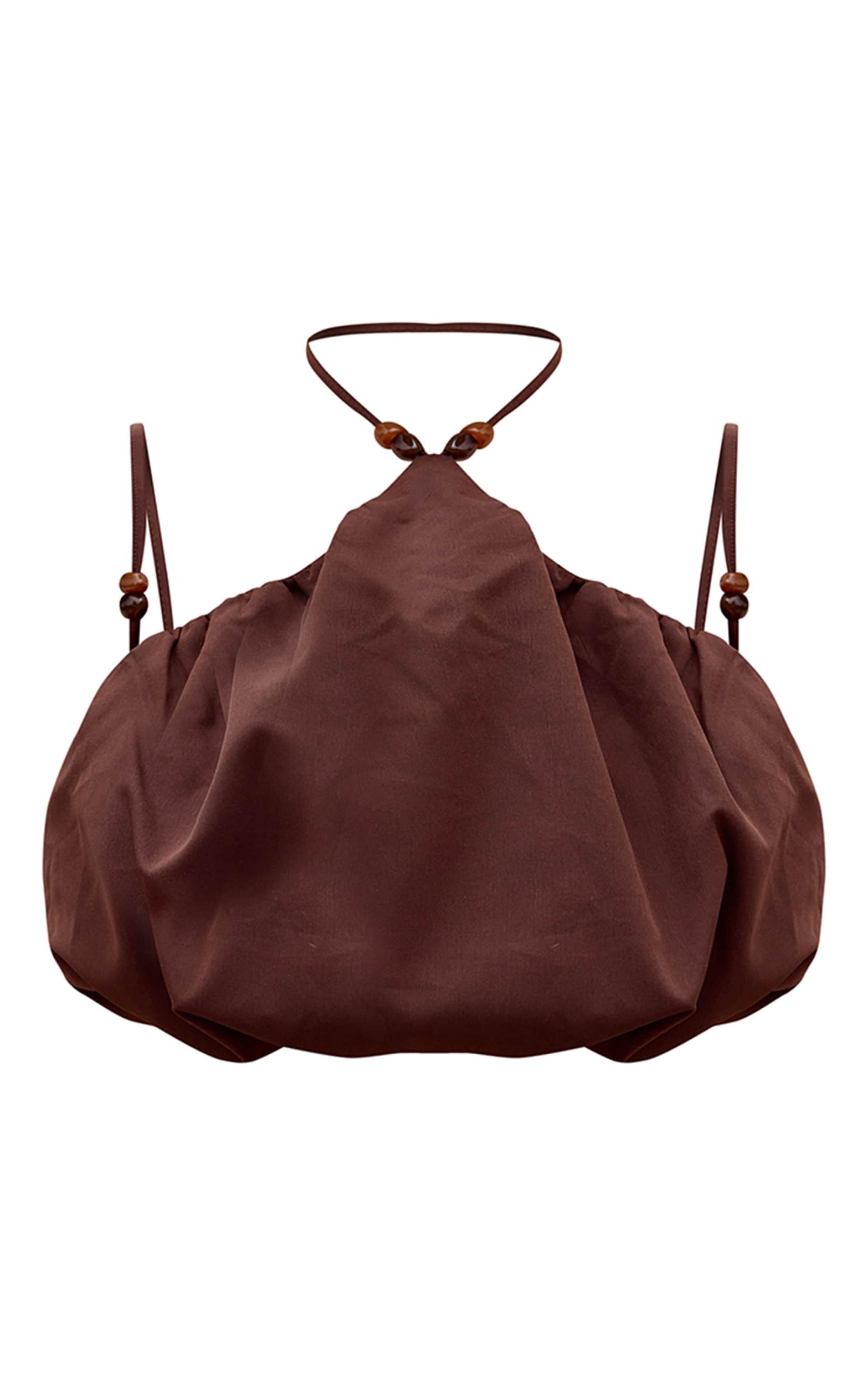 Get festival ready with this dark chocolate bead detail strappy halterneck puffball crop top. Featuring a dark chocolate material with bead detailing, a halterneck neckline, and a puffball crop fit. Team this top with a pair of heels and your go-to accessories to finish off the look we are loving right now.Length approx 33cm/13inch (Based on sample size US 4)Model wears size UK 8/ EU 36/ AUS 8/ US 4Model Height - 5ft 8inchp]:!mb-4inch>Brand: PrettyLittleThingCategory: TopsProduct type: Cami TopColor: Dark ChocolateMaterial: Faux LinenNeckline: HalterneckSleeves: SleevelessOccasion: Evening