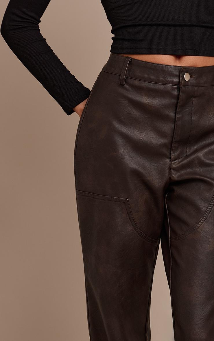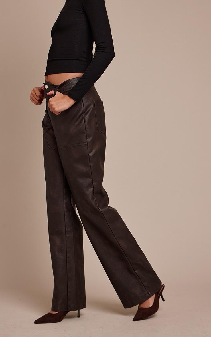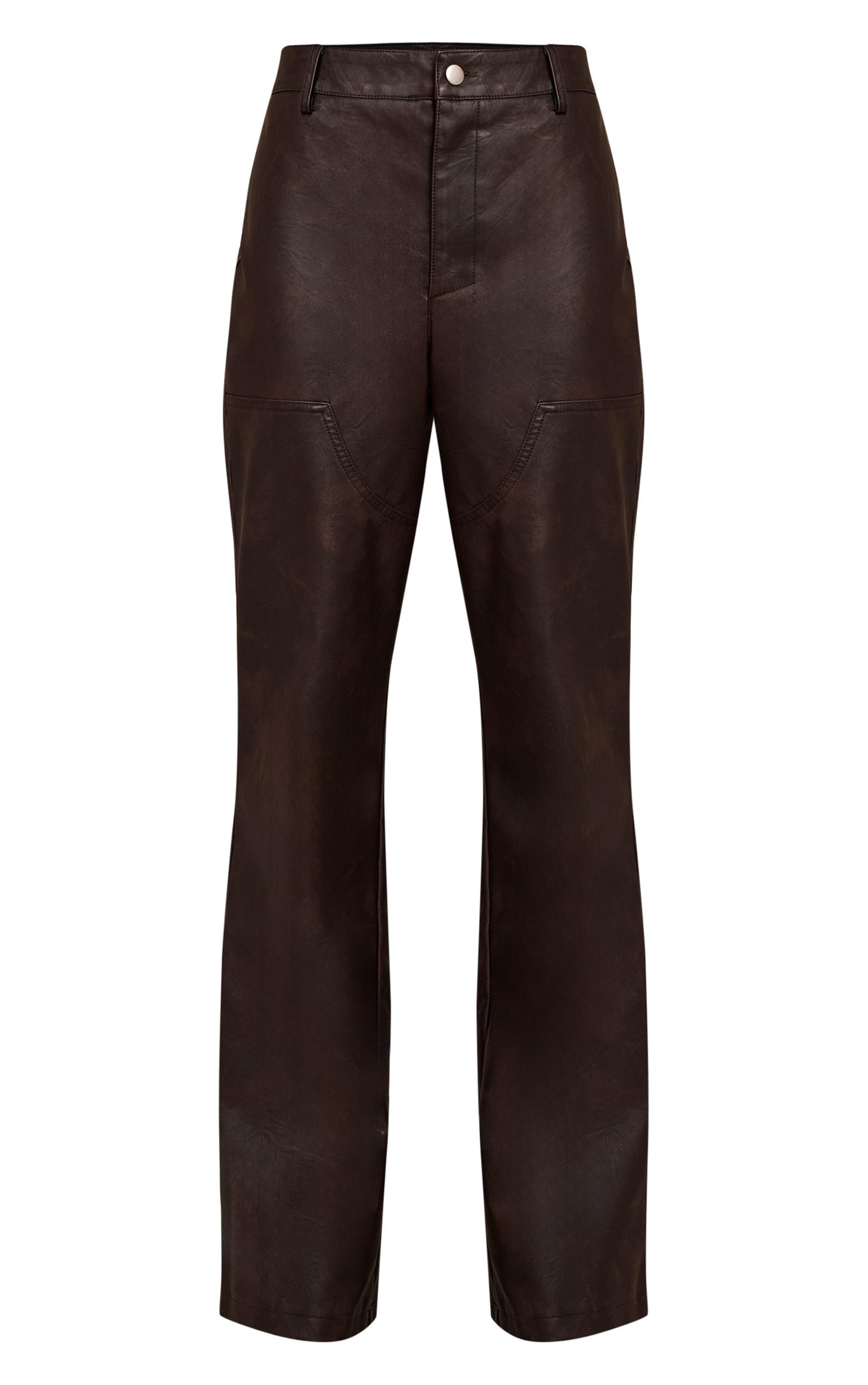 Step out with a knowing confidence that commands the night. The dark chocolate faux leather seam detail pants offer a distinct silhouette, cut to an elongating straight-leg profile with a flattering high waist and distinctive seam detailing for a tailored, modern finish. The deep dark chocolate hue grounds this statement design, complete with a clean front button and zip fastening. Pair these pants with a sleek long-sleeved top or a crisp tailored blouse, elevating the look further with sharp strappy heels and understated gold stud earrings for an intentional ensemble that truly owns the evening.Length approx 76cm/30inch (Based on sample size US 4)Model wears size UK 8/ EU 36/ AUS 8/ US 4Model Height - 5ft 10inchp]:!mb-4inch>Brand: PrettyLittleThingCategory: BottomsProduct type: StraightColor: Dark ChocolateMaterial: Faux LeatherOccasion: Evening