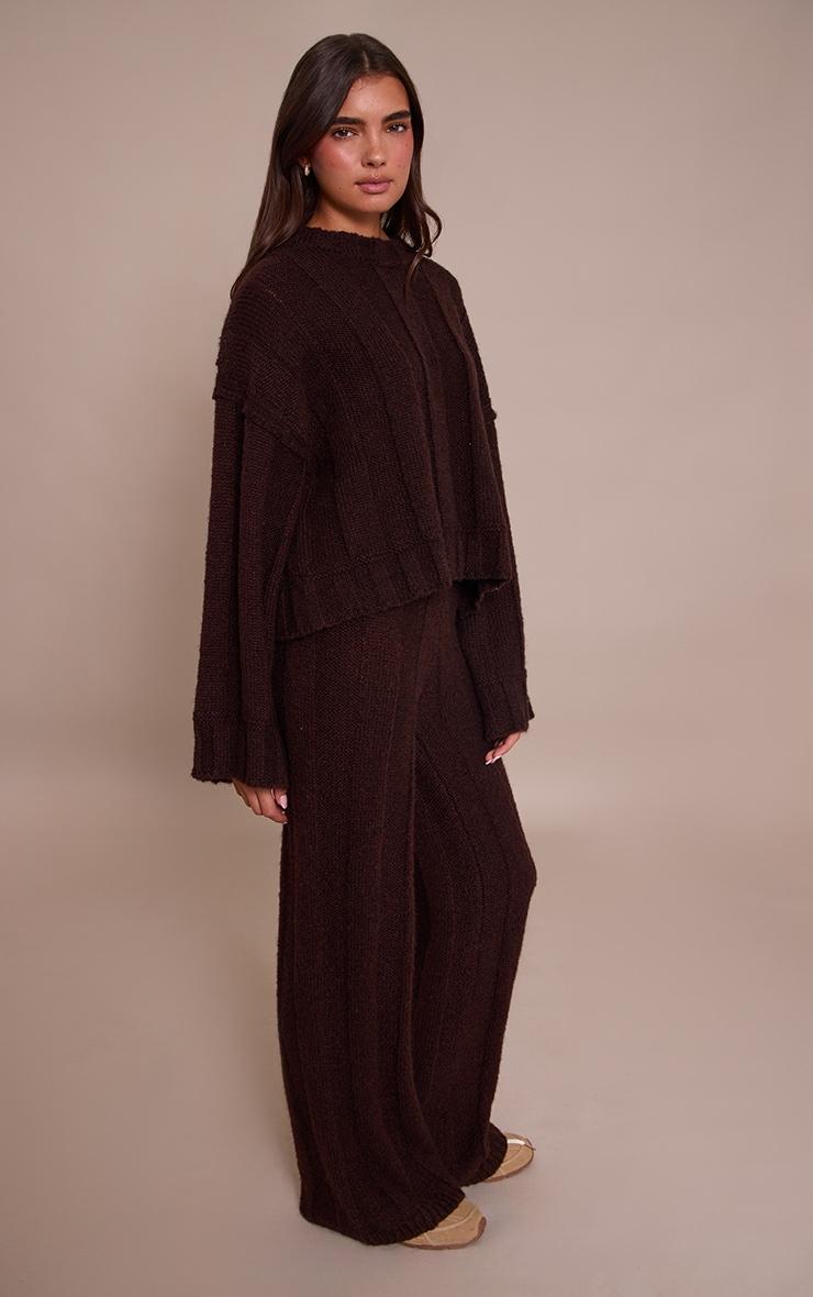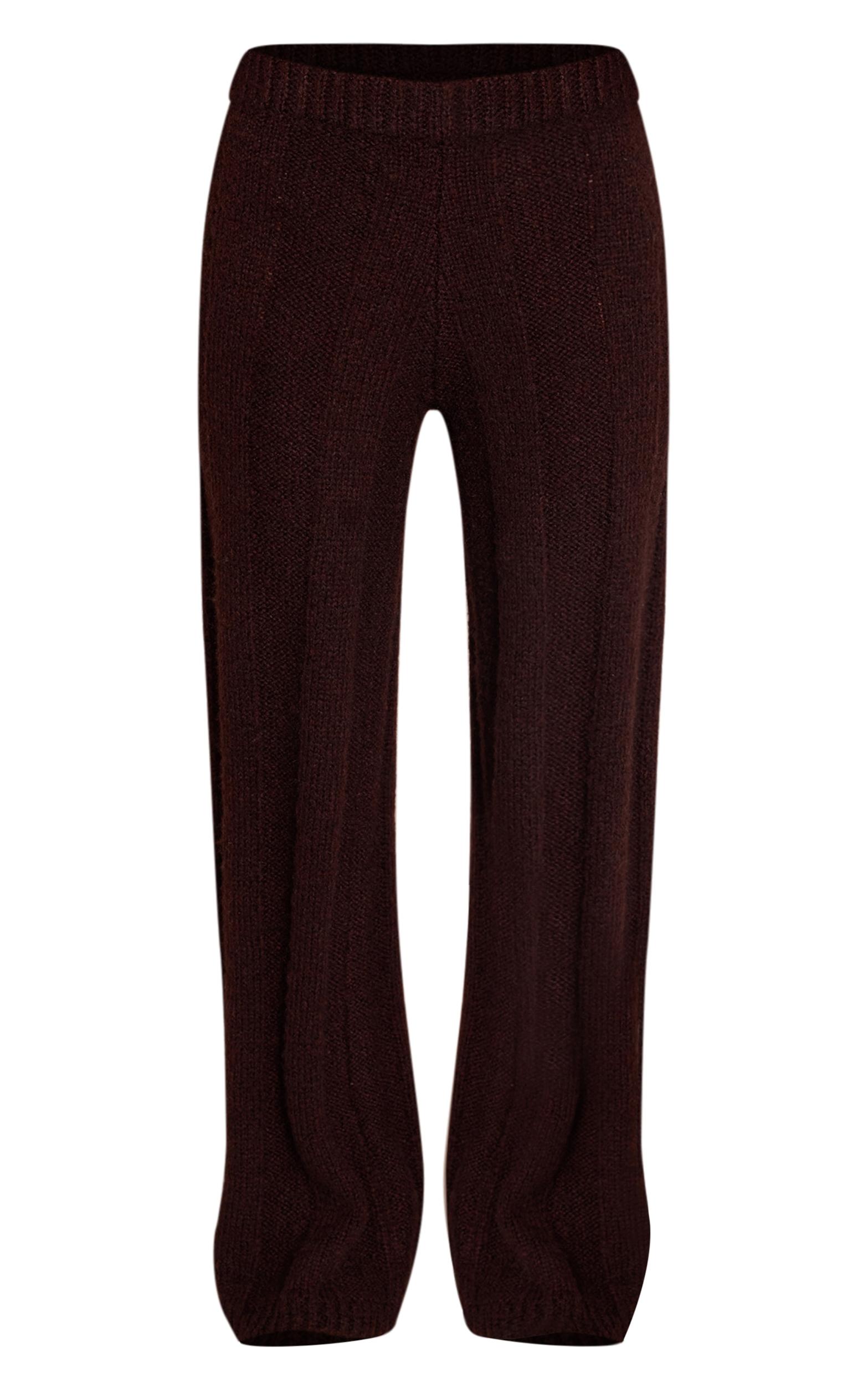 The dark chocolate thick rib knitted pant combines comfort and refinement. Designed in a thick ribbed knit with a soft, wide-leg silhouette, these pants are ideal for lounging or elevated daywear. Pair with the matching sweater for a cozy, coordinated look or style with a crisp white shirt for modern contrast. A versatile must-have that blends minimalism with luxury.Length approx 76cm/30inch (Based on sample size S)Model wears size SModel Height - 5ft 7inchp]:!mb-4inch>Category: KnitwearProduct type: Knitted PantsColor: Dark ChocolateMaterial: KnitOccasion: Day
