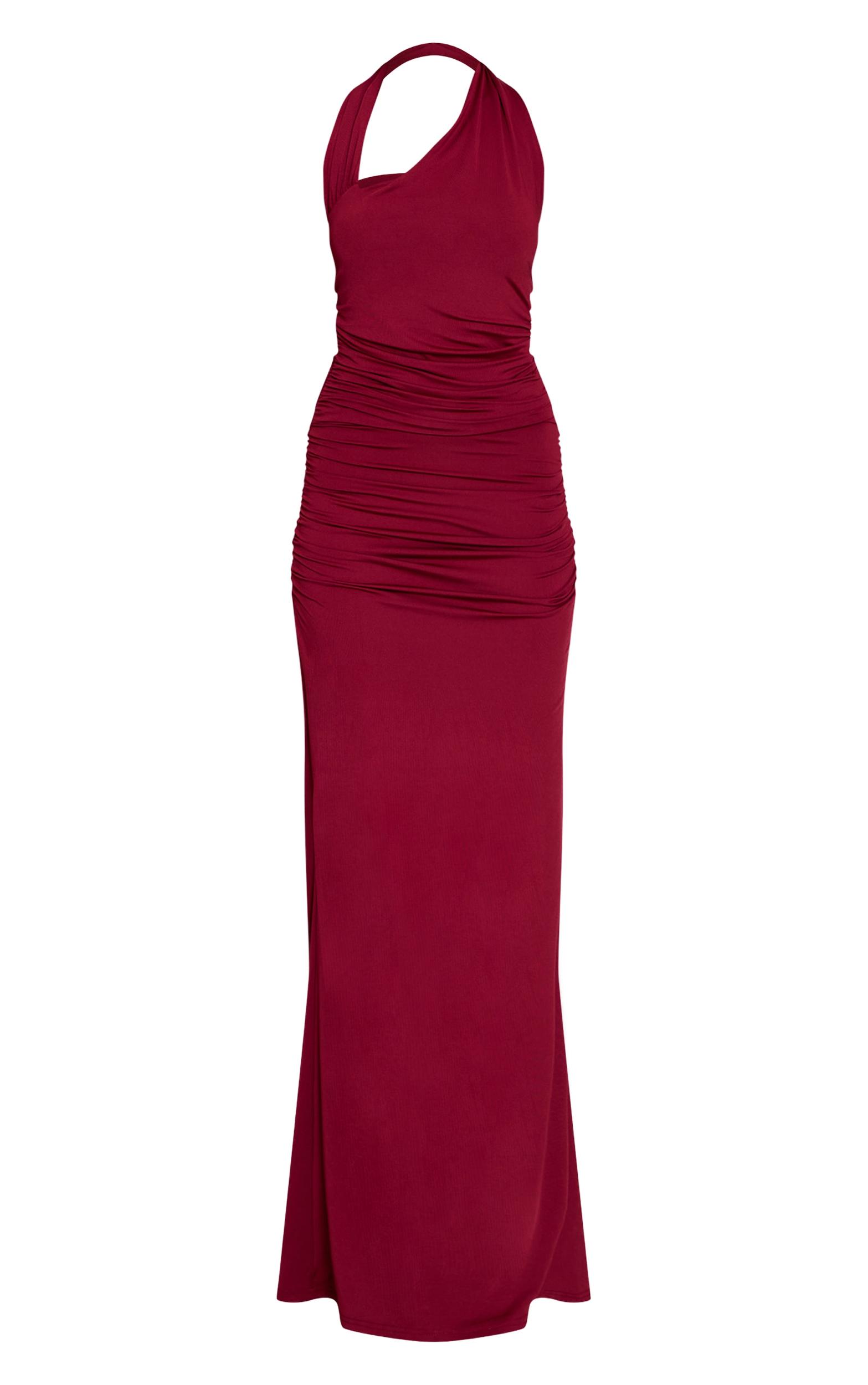 A confident statement for your evening agenda arrives with the dark red slinky halterneck maxi dress. Its body-contouring fit features a sleek halterneck and chic ruched detailing, flowing to a maxi length. This piece is destined for sophisticated evening affairs. Complete your look with gold heels and delicate gold stud earrings for an effortless finish.Length approx 155cm/61inch (Based on sample size US 4)Model wears size UK 8/ EU 36/ AUS 8/ US 4Model Height - 5ft 9inchp]:!mb-4inch>Brand: PrettyLittleThingCategory: DressesProduct type: Bodycon DressColor: Dark RedMaterial: Slinky JerseyDesign: PlainNeckline: AsymmetricSleeves: SleevelessOccasion: Evening