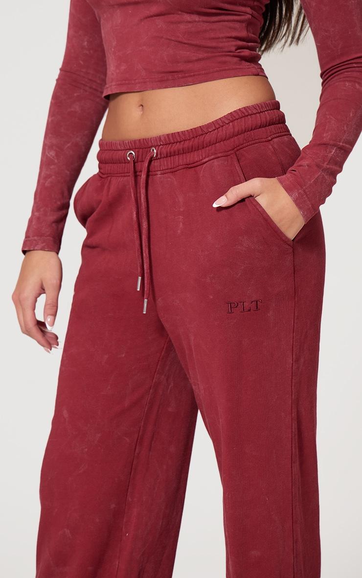 Introducing these dark red washed wide leg sweatpants. Brought to you in red fabric with a washed effect, these sweatpants have a stretch waist and a wide leg fit. Team them with the matching long sleeve top and your favorite sneakers for a look we're loving right now.Length approx 76cm/30inch (Based on sample size S)Model wears size SModel Height - 5ft 7inchp]:!mb-4inch>Category: AthleisureProduct type: Wide Leg JoggersColor: Dark RedMaterial: Fleeceback SweatOccasion: Day