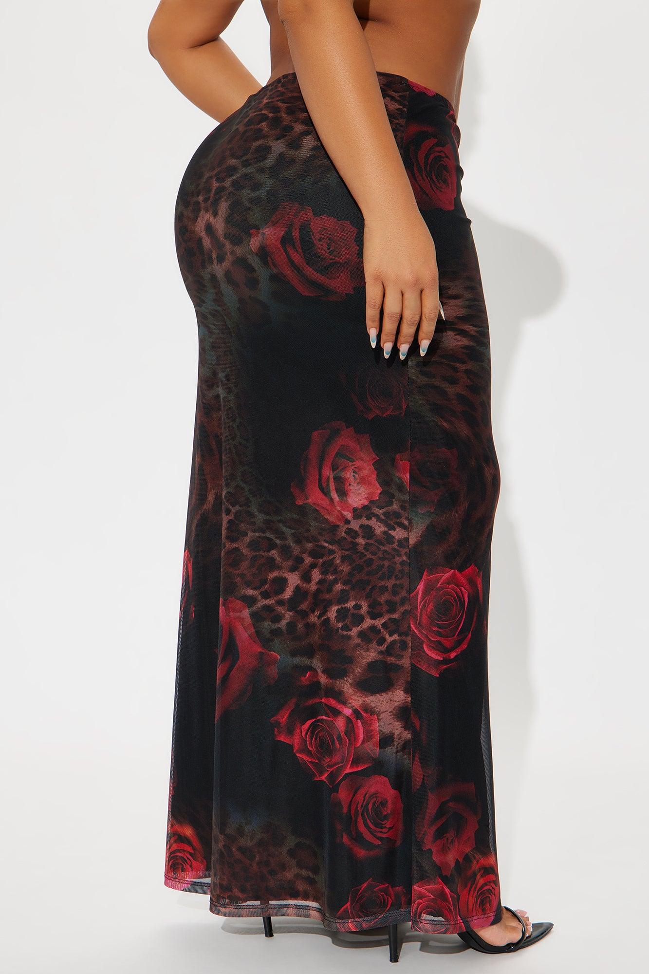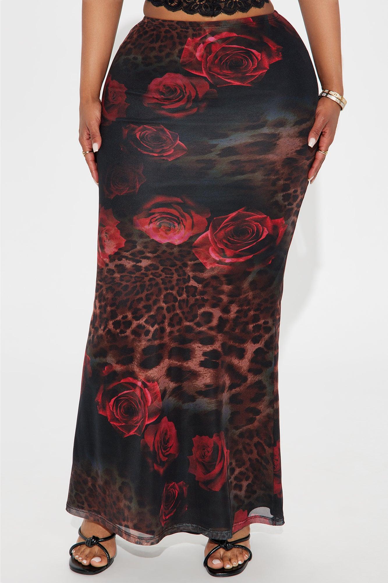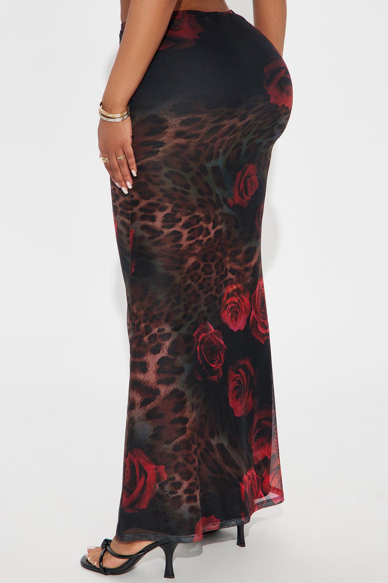 Dark Romantic Leopard Floral Mesh Maxi Skirt - Red/combo Female