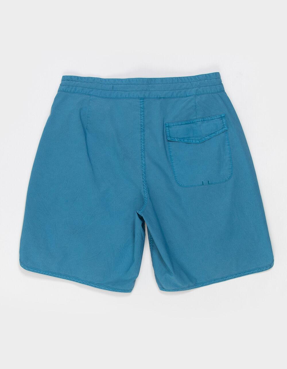 Dark Seas Go-To Boardshorts. 4-way stretch pigment dyed boardshorts. Drawcord cinch in waistband. Side seam pockets with mesh pocket bags. Patch back pocket with flap. Elastic shock cord key loop. Logo print on inside waistband. Logo embroidery at left leg. Scalloped hem. 18" outseam. Approximate inseam: 8". 51% Cotton 45% Polyester 4% Spandex. Machine wash. Imported.