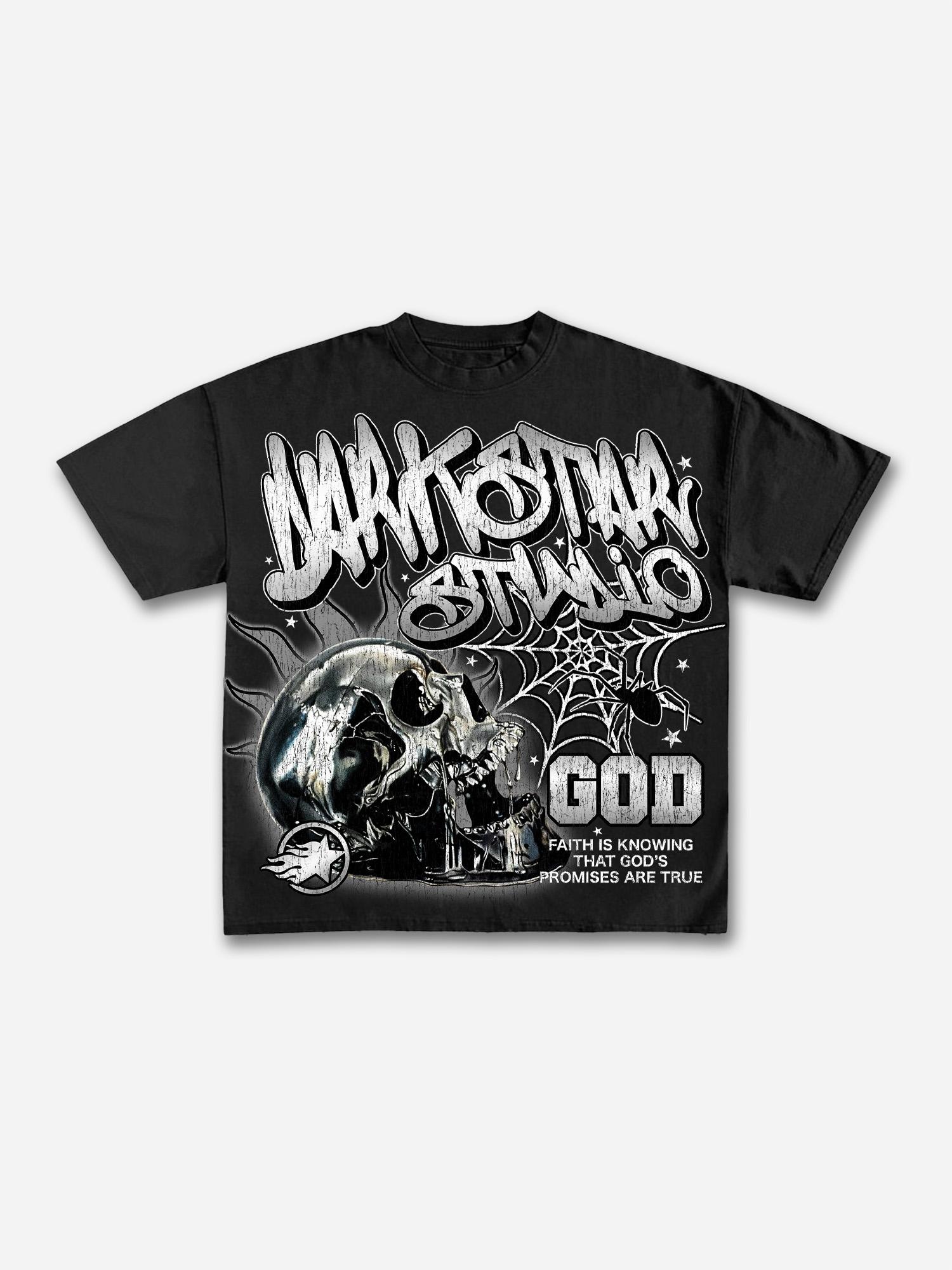 Darkstar-God's Skull Print Pattern Cotton T-Shirt