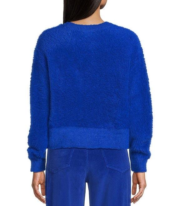 From Daze, this sweater features: Solid Round neckline Long sleeves Fuzzy material Pullover styling Cotton blend Machine wash/dry flat Imported.