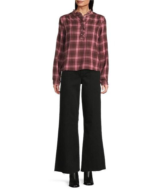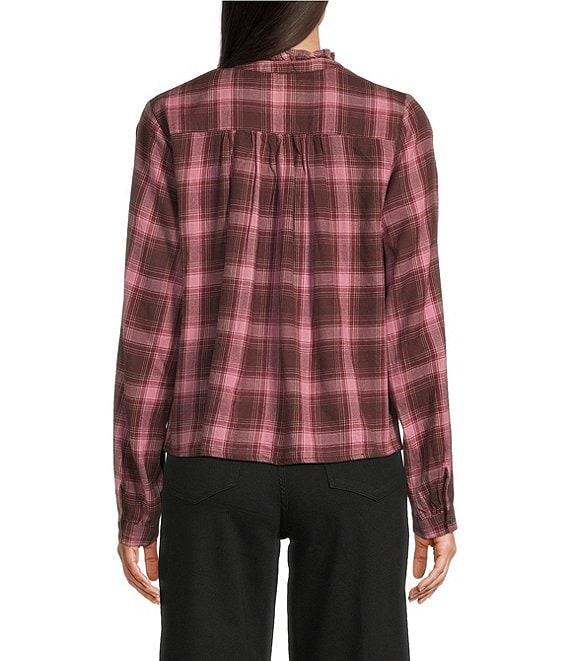 Dear John Chatra Plaid Woven Ruffled Crew Neck Long Sleeve Shirt