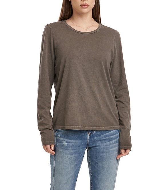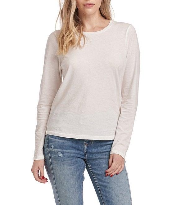 From Dear John, this t-shirt features: Knit fabrication Tee silhouette Crew neckline Long sleeves Pullover construction Slim fit Approx. 24 1/2" length front and back cotton Wash before wearing: machine wash cold; inside out; with similar colors; do not bleach; tumble dry low; warm iron when needed Imported.