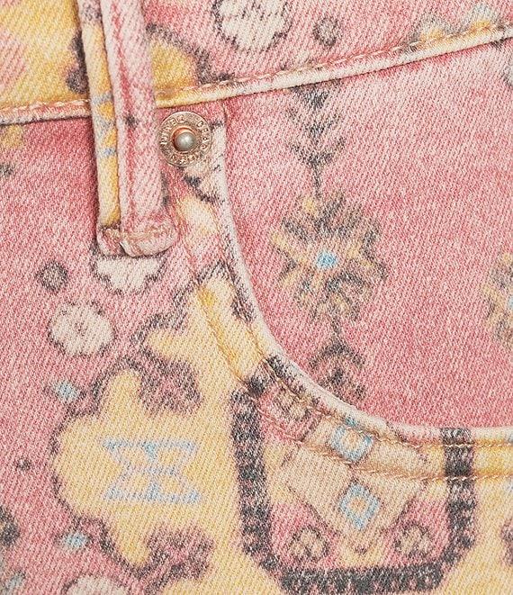 From Dear John, these jeans feature: Wide leg silhouette Abstract print Belt loops 5 pocket styling Ankle length Front button and zipper closure Approx. 31" inseam, front rise 10.5", back rise: 13" Cotton/polyester/spandex Machine wash Imported.