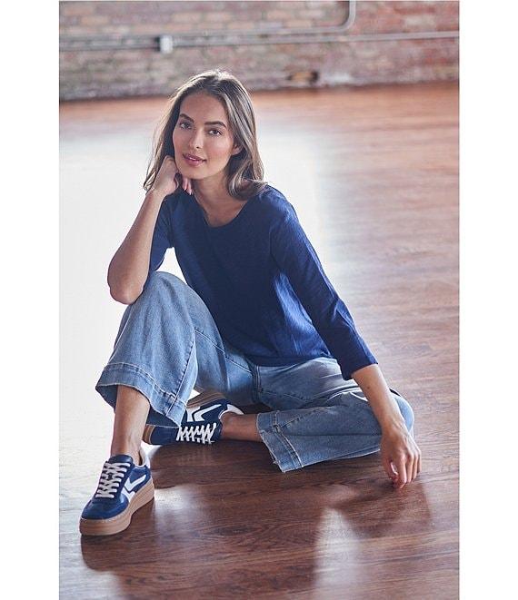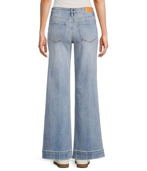 From Dear John, these jeans feature: Stretch denim fabrication Wide leg silhouette Belt loops 5-pocket styling Full length Front zipper and button closure Approx. 31" inseam; front rise: 11.5"; back rise: 14.5" Cotton/polyester/spandex Machine wash cold/tumble dry low Imported.