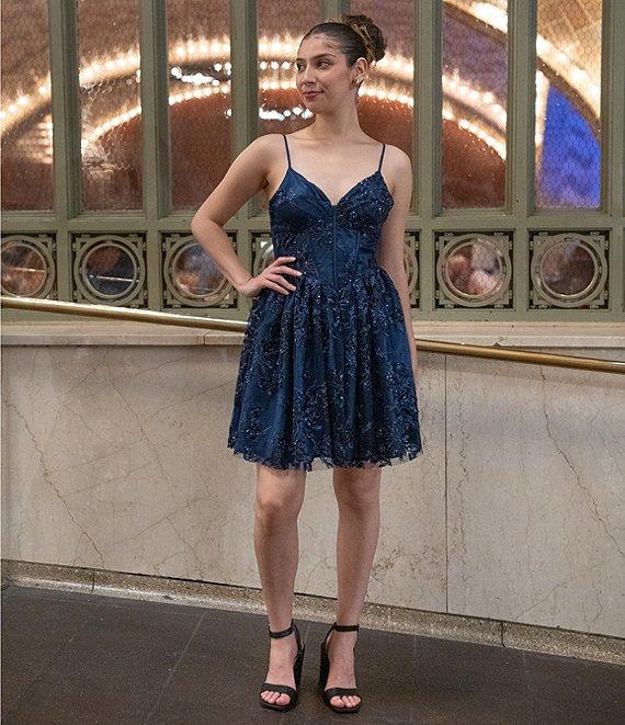 From Dear Moon, this dress features: Floral-patterned sequin glitter embellishments V-neckline Sleeveless Adjustable spaghetti straps Corset bodice Drop waist Lace-up back Full, pleated skirt Zip back closure Polyester Hand wash/line dry Imported.
