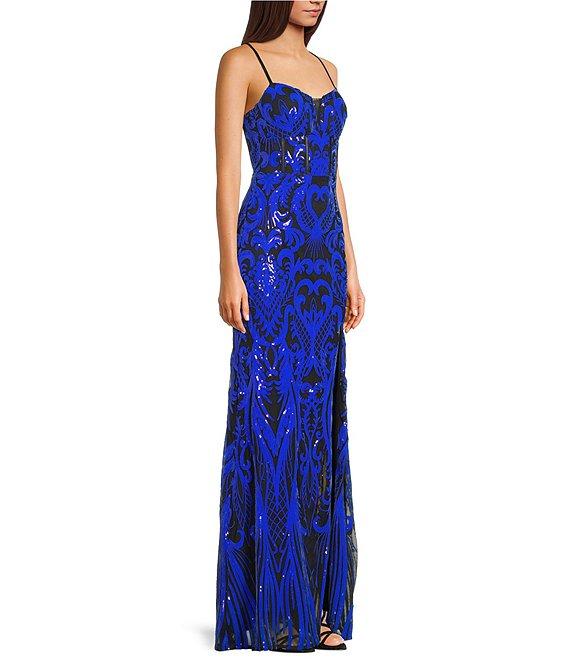 From Dear Moon, this dress features: Sequin-patterned power mesh fabric Sweetheart neckline Sleeveless Spaghetti straps Fitted silhouette Zip back closure Approx. 62" length Polyester/spandex; lined Hand wash/line dry Imported.