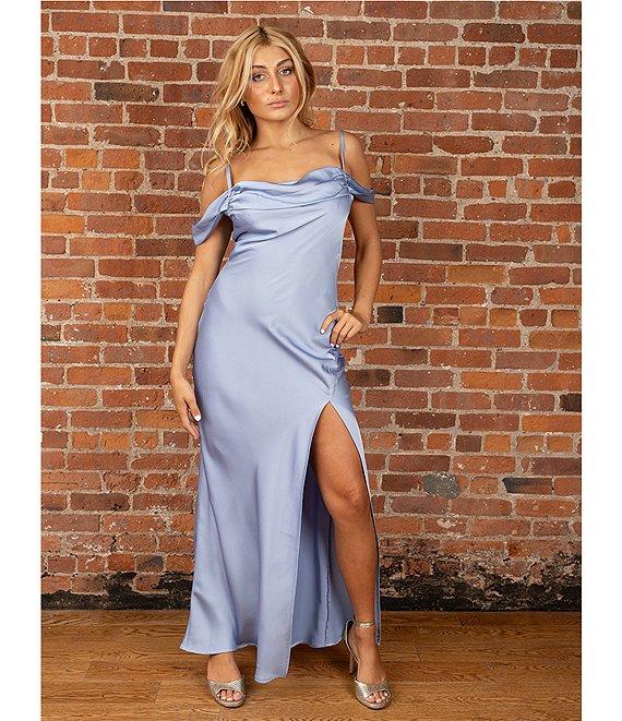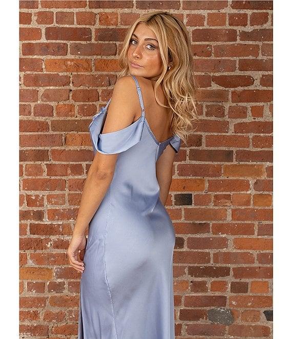 Dear Moon Satin Off The Shoulder Cowl Neck Dress