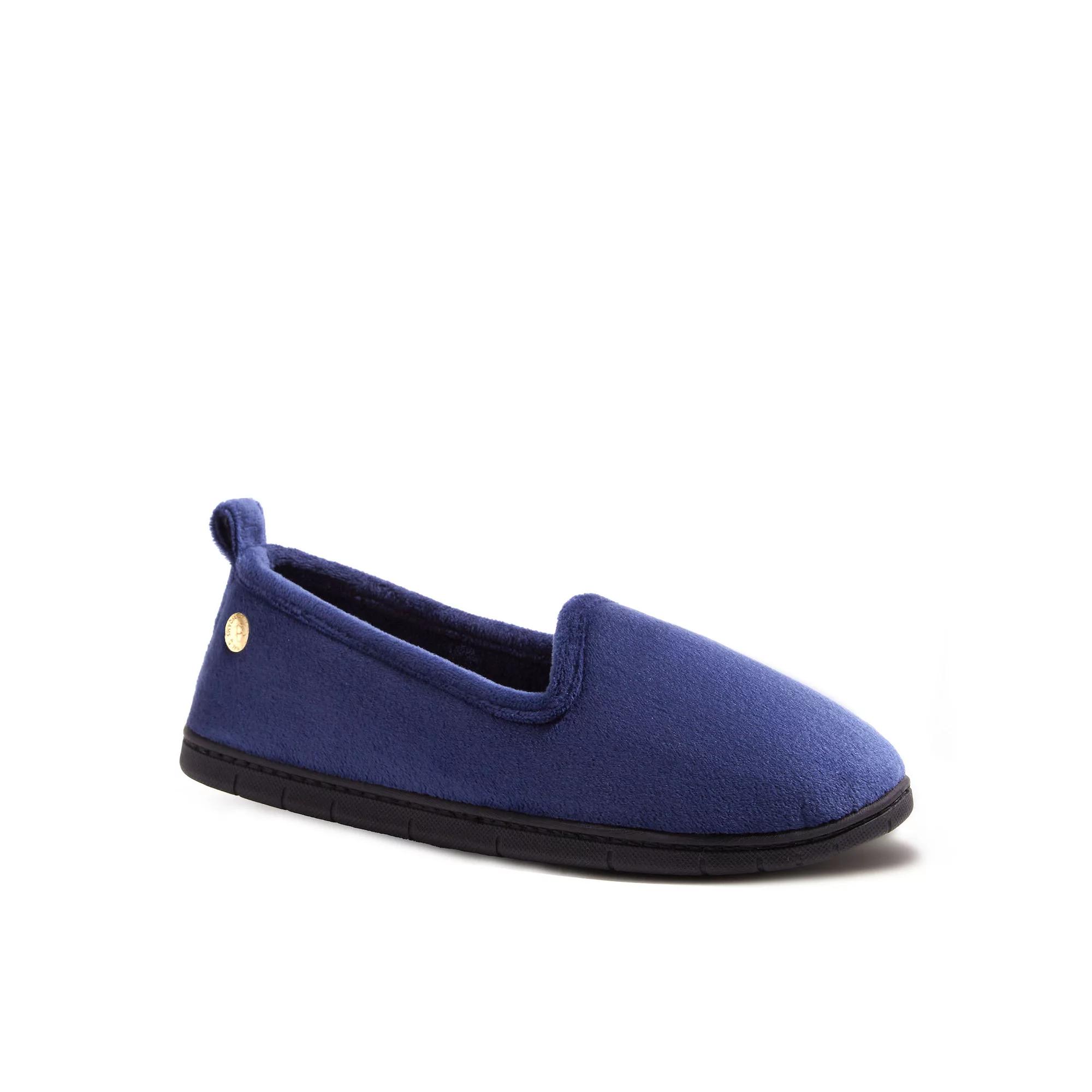 All-day comfort defines these soft Women's Dearfoams Rachel Velour Closed Back Slippers. How do you accessorize? Check out our ACCESSORIES GUIDE for essential tips to elevate your style with must-have accessories. - https://www.kohls.com/feature/accessories-guide.jsp. DETAILS: Heel tabs, Built-in temperature regulation, Machine wash, dry flat, Slip-on. SHOE CONSTRUCTION: Polyester upper material, Polyester lining, Extra-supportive TPR outsole, Memory foam-padded footbed. SHOE DETAILS: Round toe, Slip-on, Non-skid sole, Machine wash, dry flat, Imported. Size: XLG Wide. Color: Peacoat. Gender: female. Age Group: adult. Material: OTHER MATERIAL.