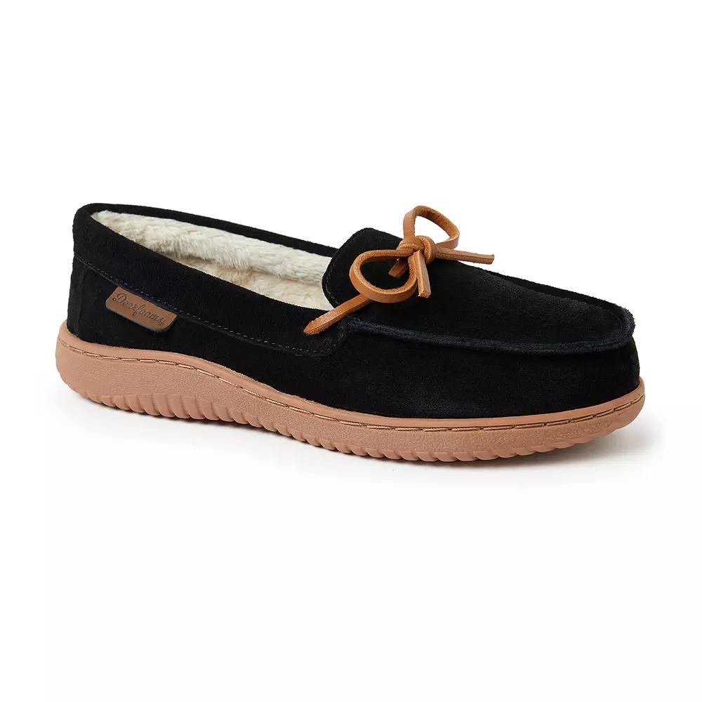 Slip into comfort with these Dearfoams Wilmington womens suede Energy Return moccasin slippers. Click this FOOTWEAR GUIDE to find the perfect fit and more! Slip into comfort with these Dearfoams Wilmington womens suede Energy Return moccasin slippers. Click this FOOTWEAR GUIDE to find the perfect fit and more! FEATURES Indoor/outdoor use Slip-resistant outsoleDETAILS Leather upper Polyester lining TPR outsole Round toe Memory foam insole Slip-on Machine wash, dry flat Size: X Large. Color: Black. Gender: female. Age Group: adult.