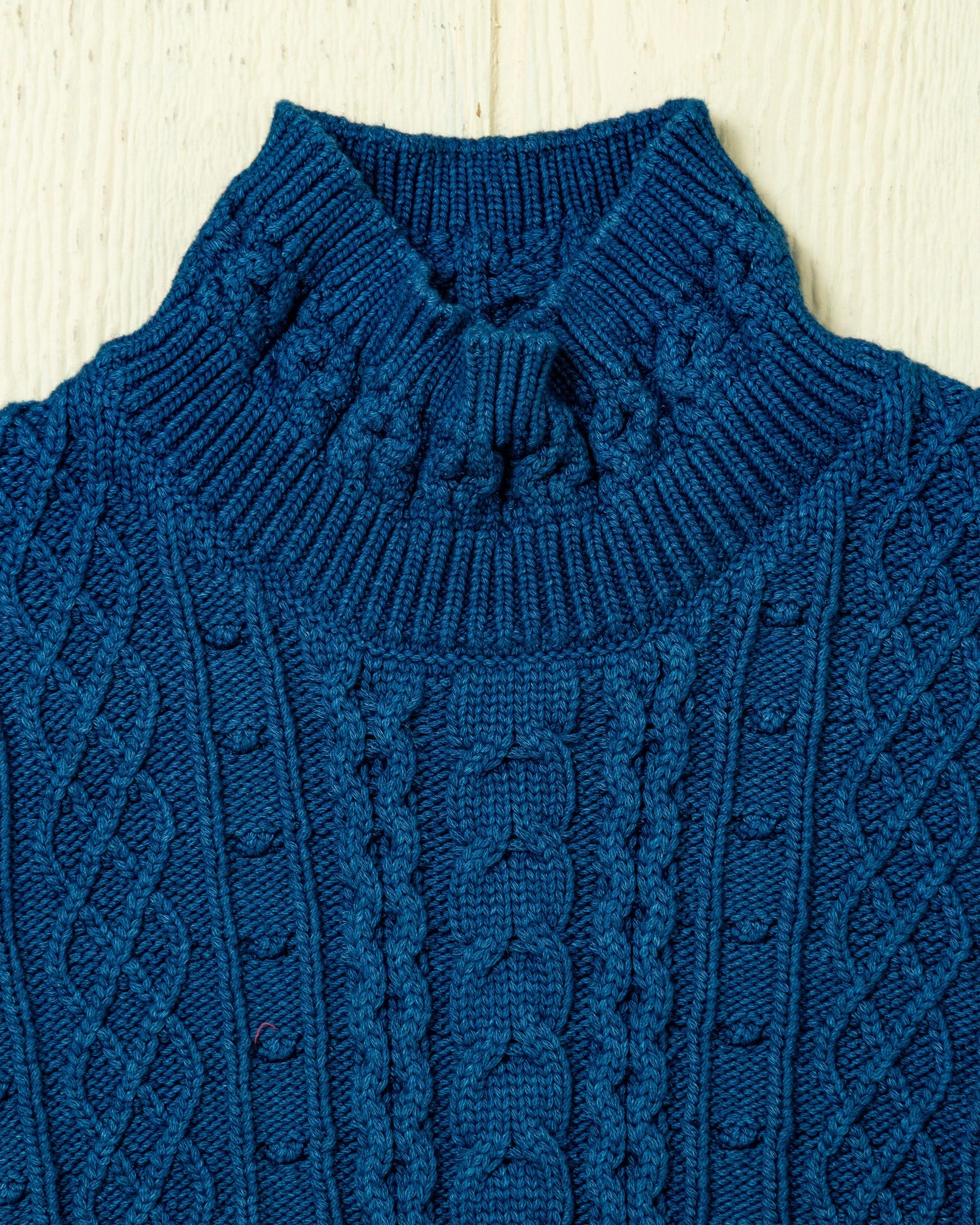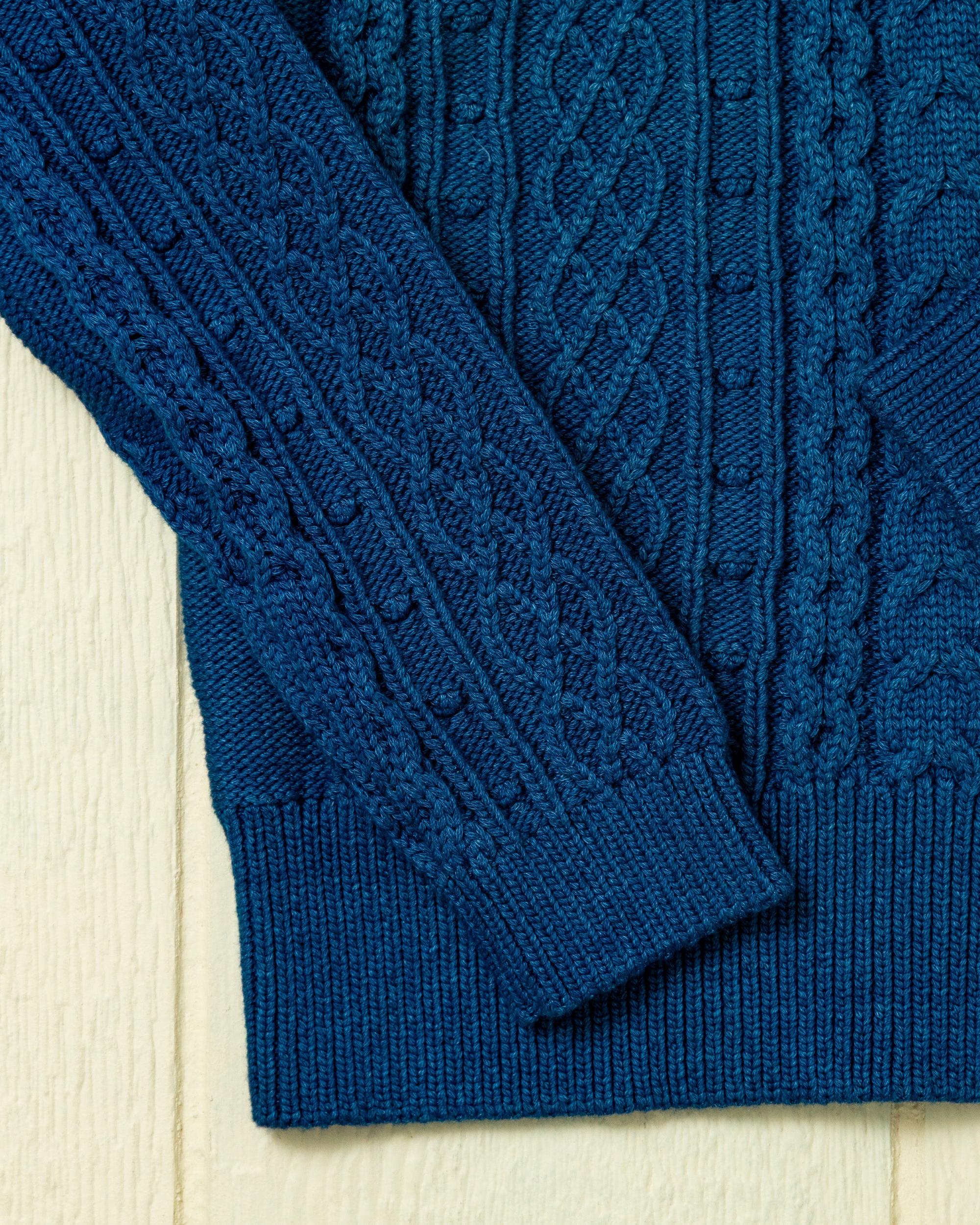 It is knit from an indigo-dyed cotton/nylon yarn which retains its shape and character over time without pilling or stretching out, making this an heirloom quality sweater you'll enjoy for years to come.