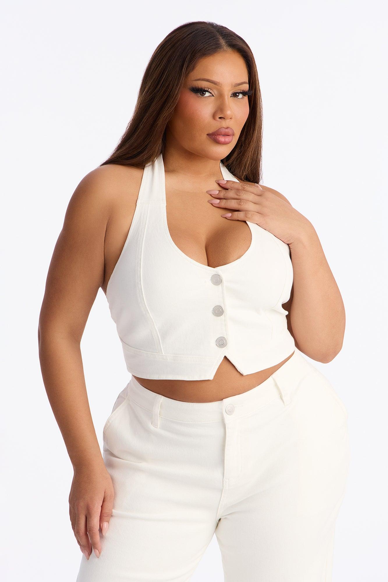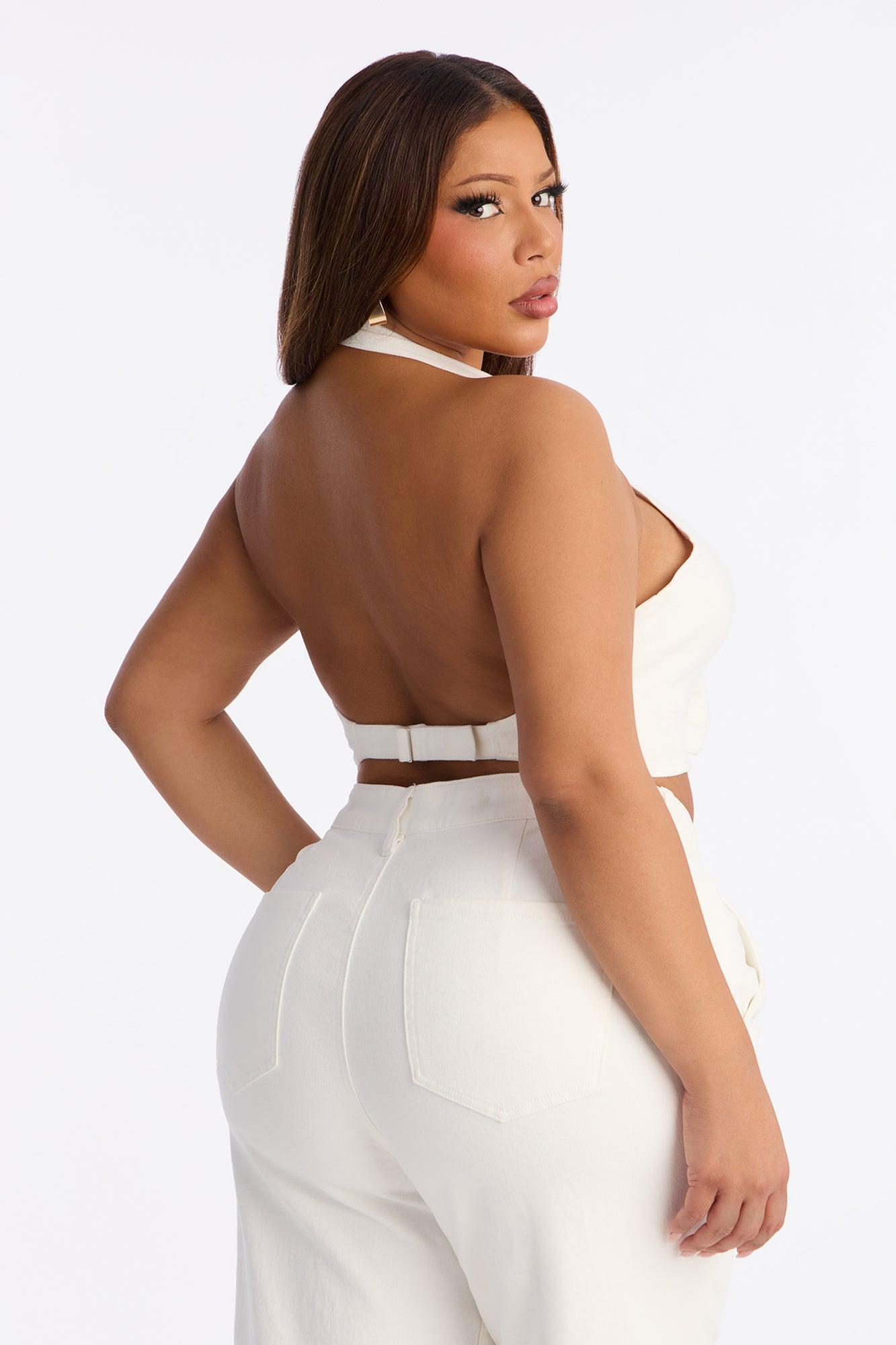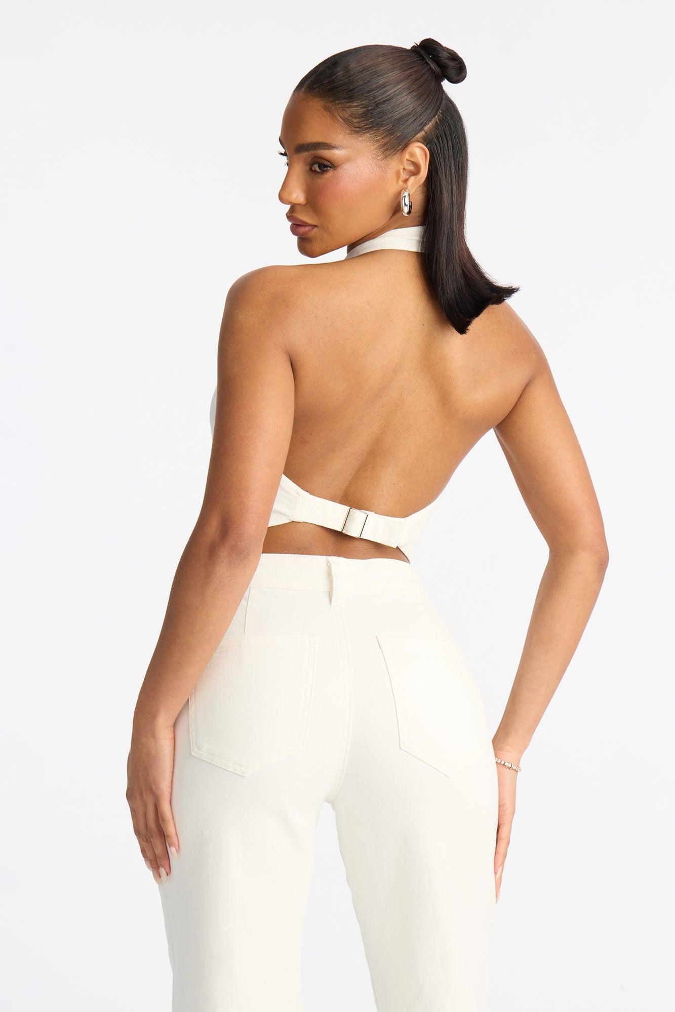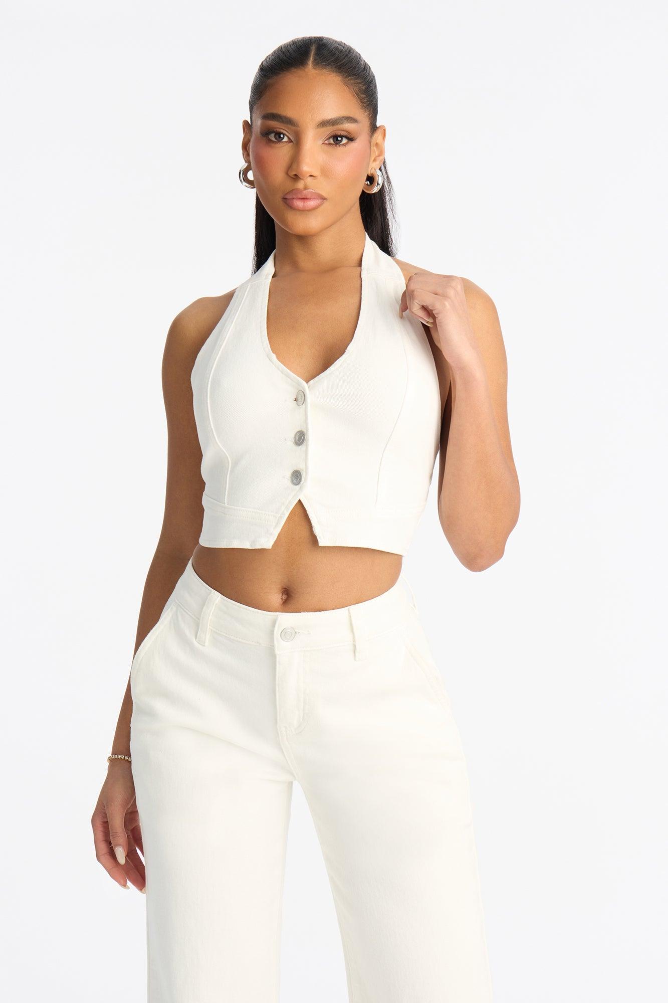Available In Medium Wash And White. Pair With Delusional Drop Waist Jeans Denim Halter Top Button Front Adjustable Back Buckle Cropped Low Stretch Self: 97% Cotton 3% Spandex Imported California Proposition 65WARNING: Cancer and Reproductive Harm - www.P65Warnings.ca.gov.