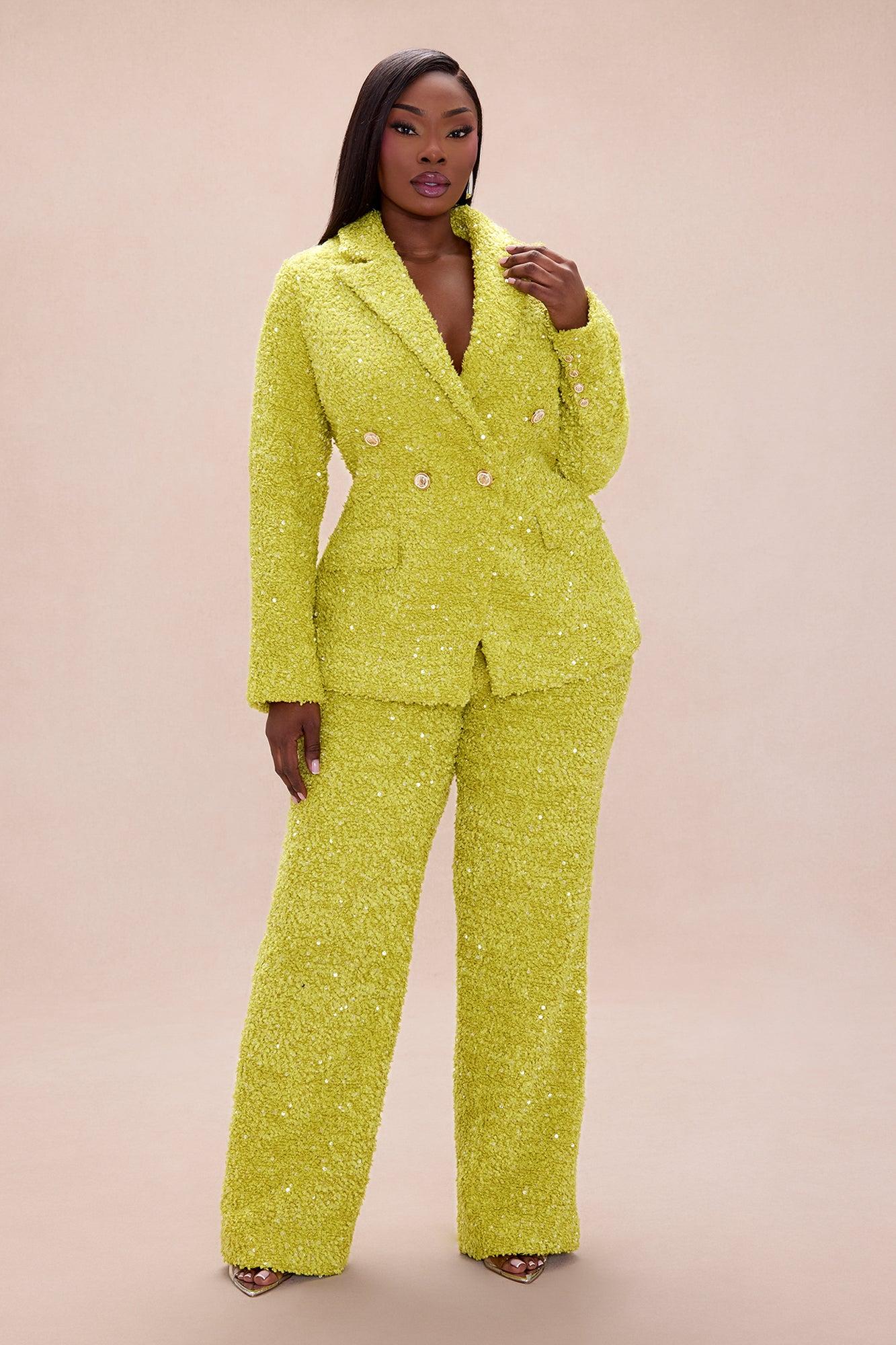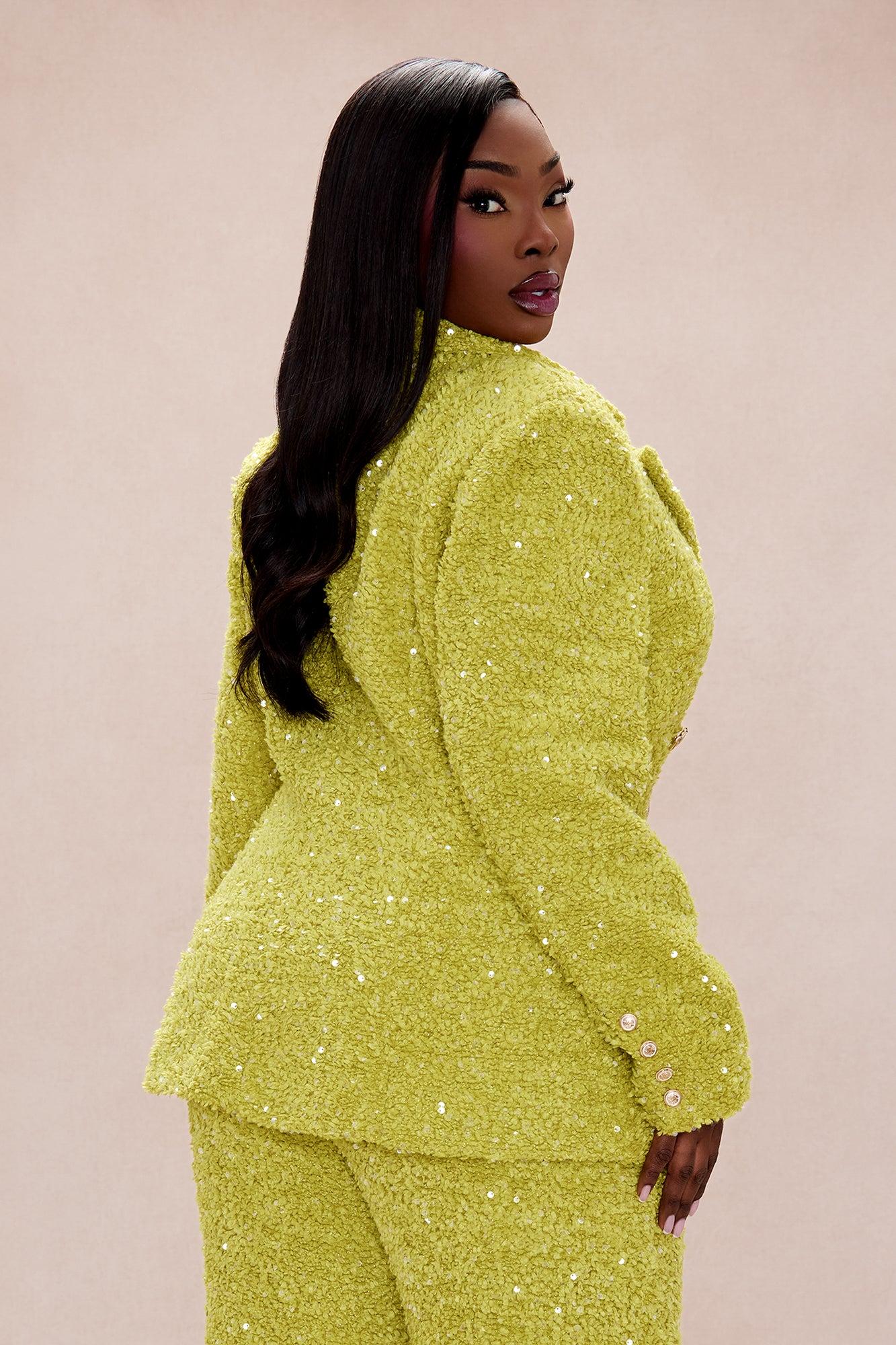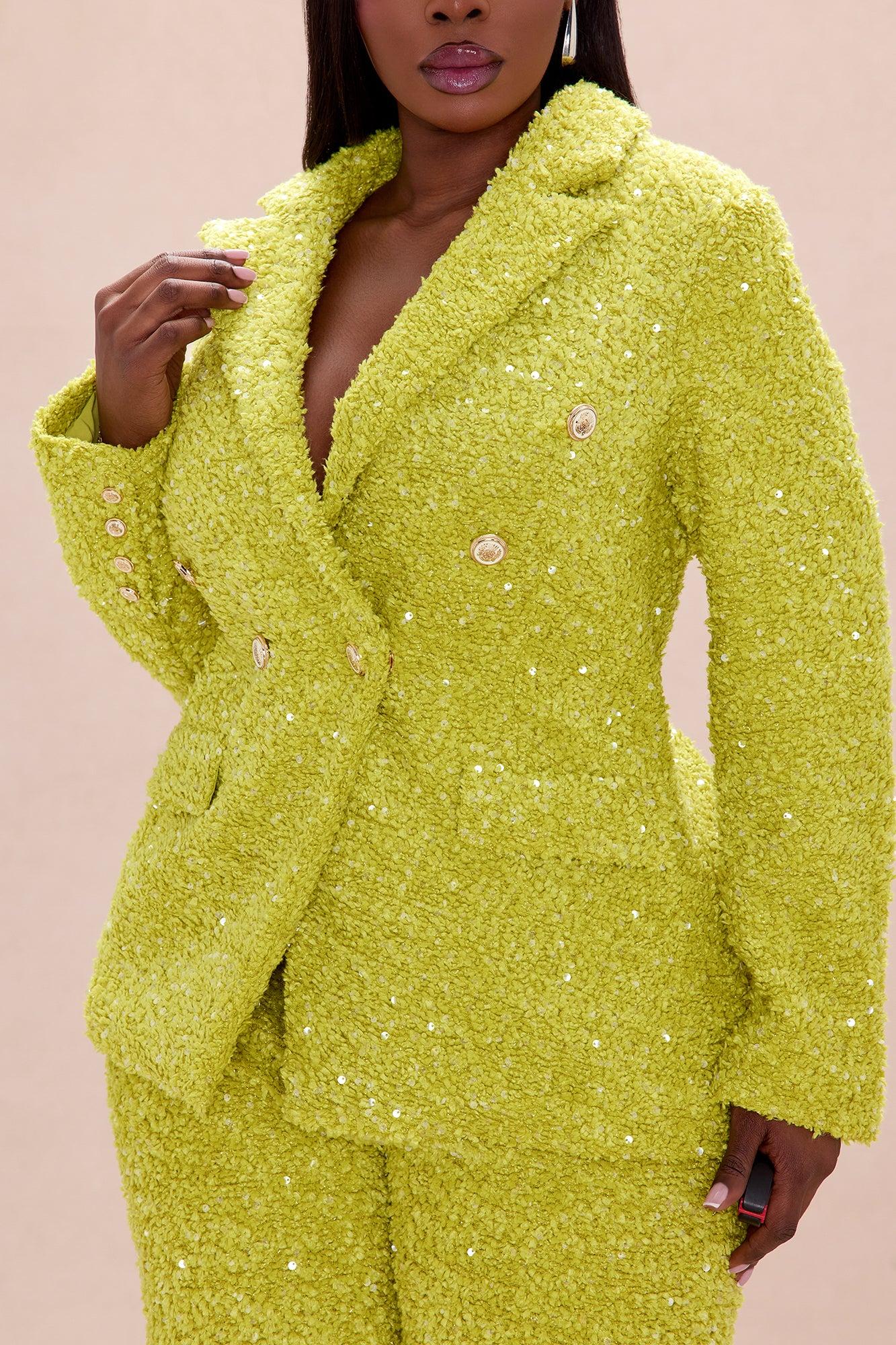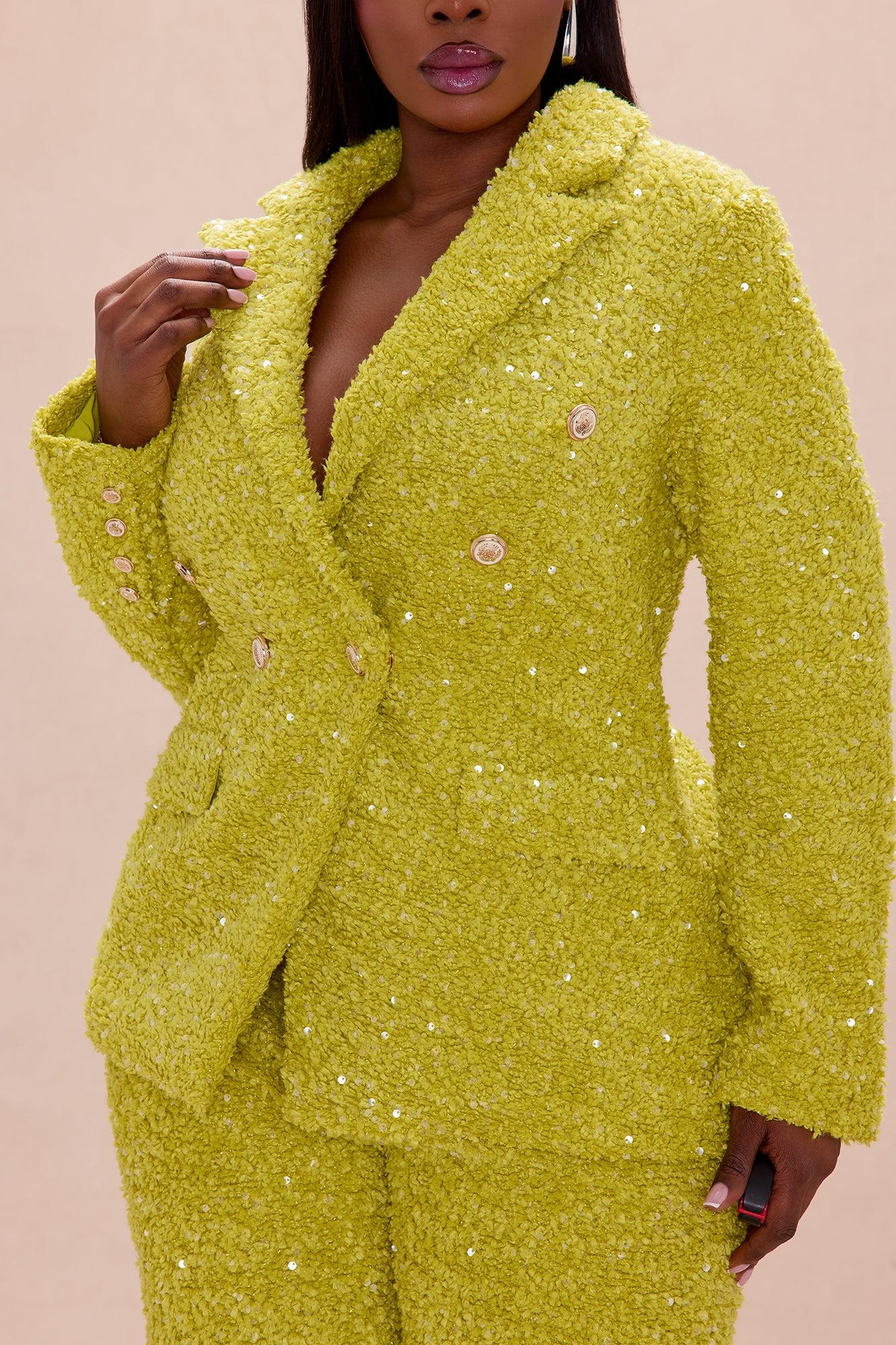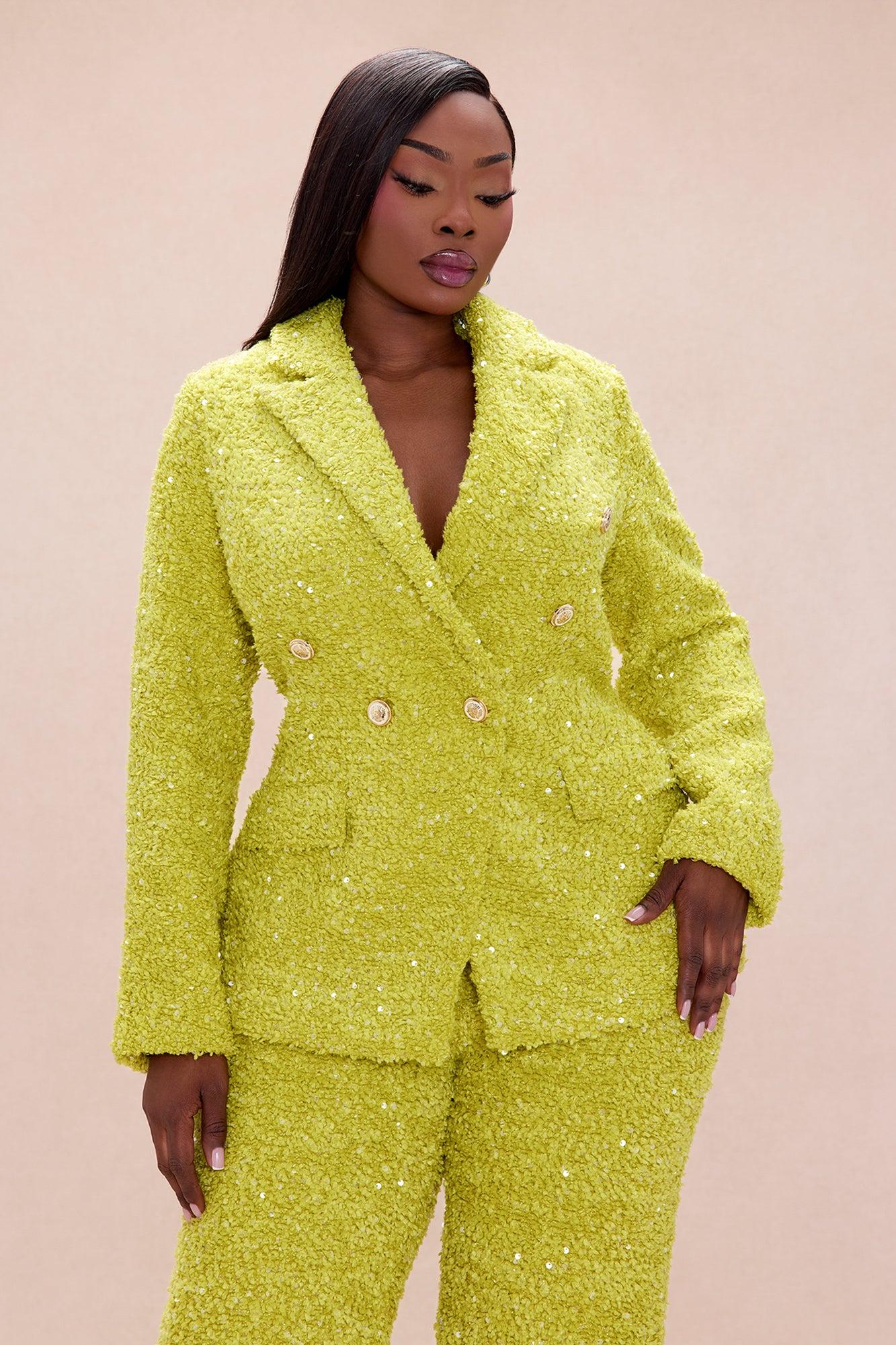 Demi Embellished Tweed Blazer - Chartreuse Female