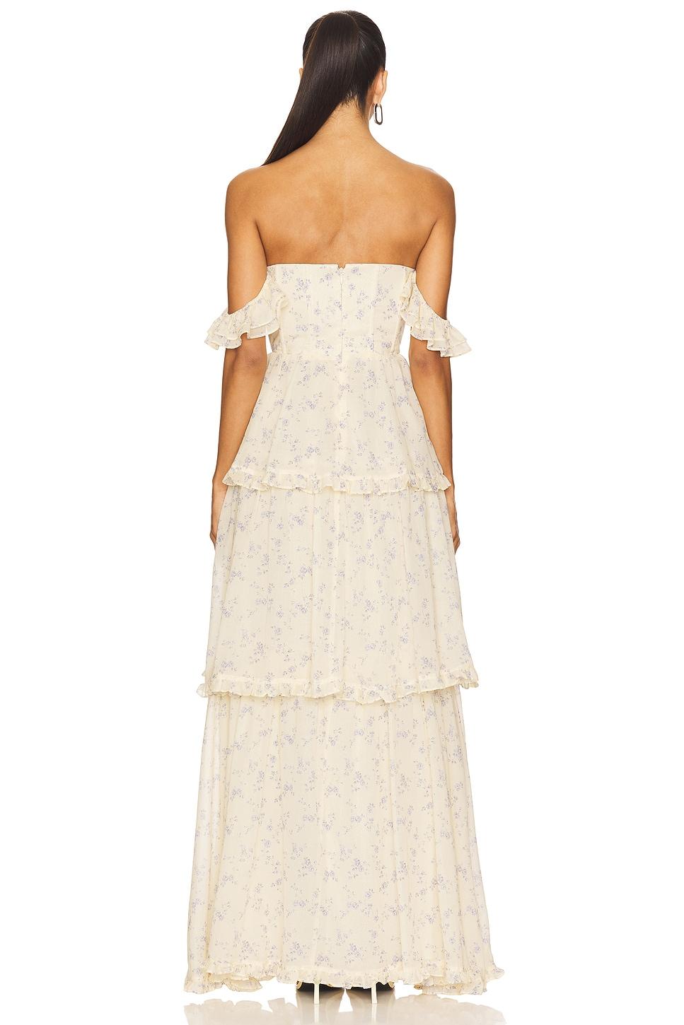 Self: 100% cottonLining: 100% viscose. Hand wash cold. Fully lined. Hidden back zip closure. Unpadded underwire cups with boned bodice. Tiered design. Midweight voile fabric. Neckline to hem measures approx 51" in length. Made in Vietnam. Revolve Style No. MALR-WD1579. Manufacturer Style No. MJD10067 U25.