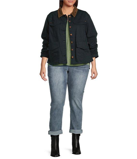 Democracy Plus Size Contrast Corduroy Collar Long Rushed Sleeve Patch Pocket Button-Front Jacket