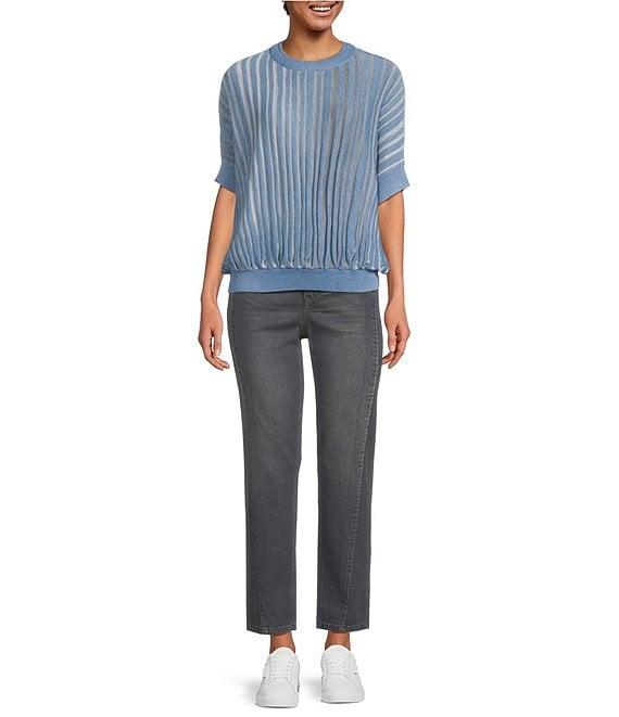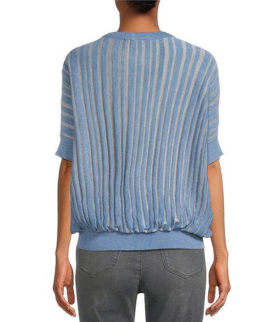 Democracy Two Tone Space-Dyed Horizon Stripe Crew Neck Short Dolman Sleeve Sweater
