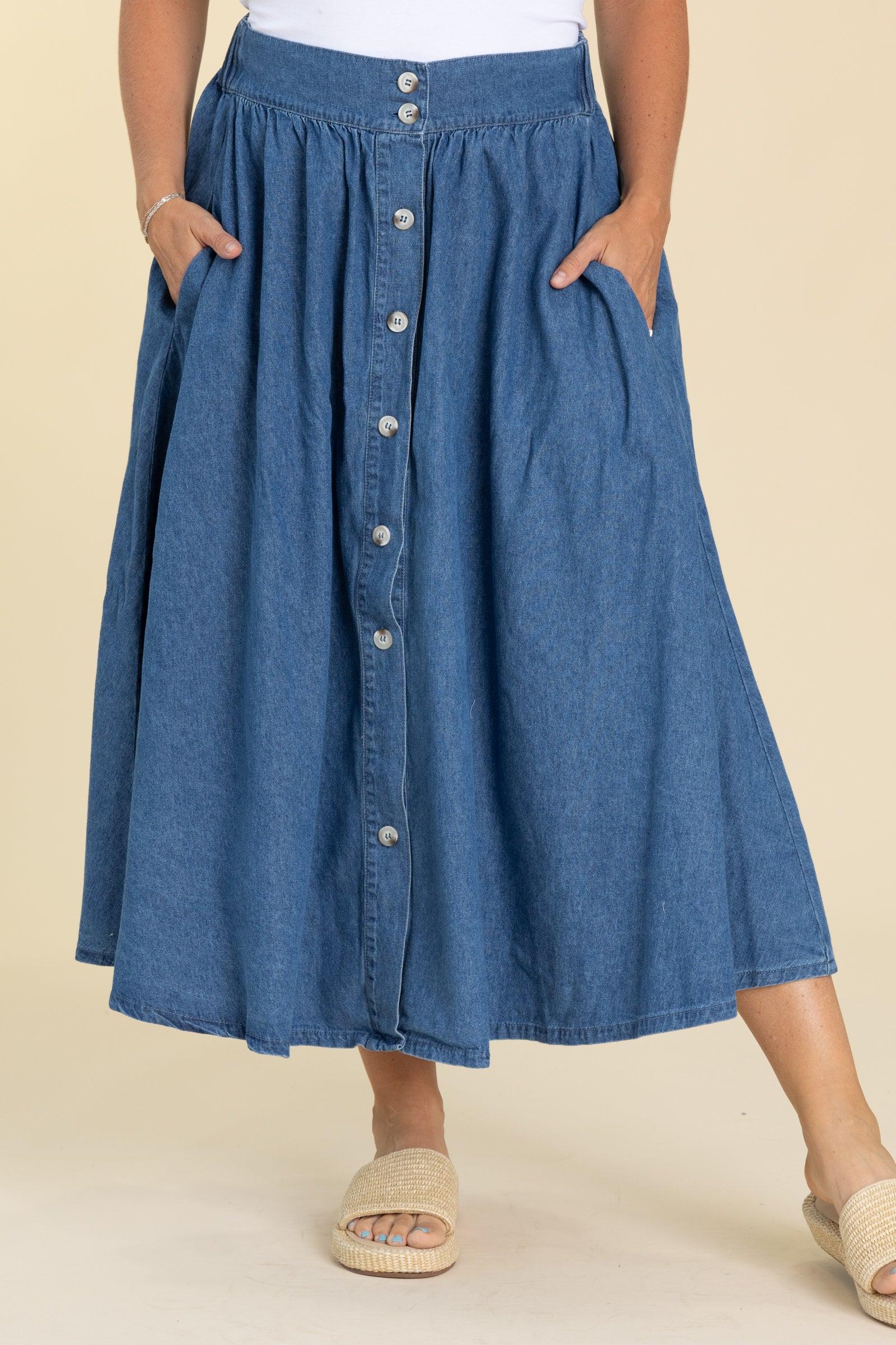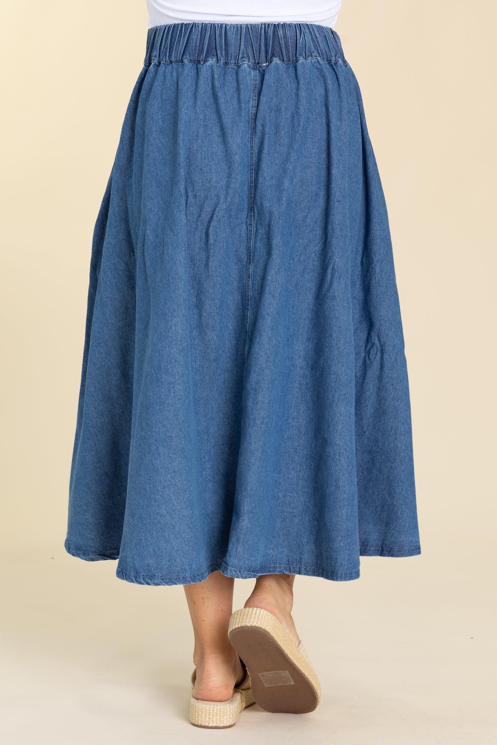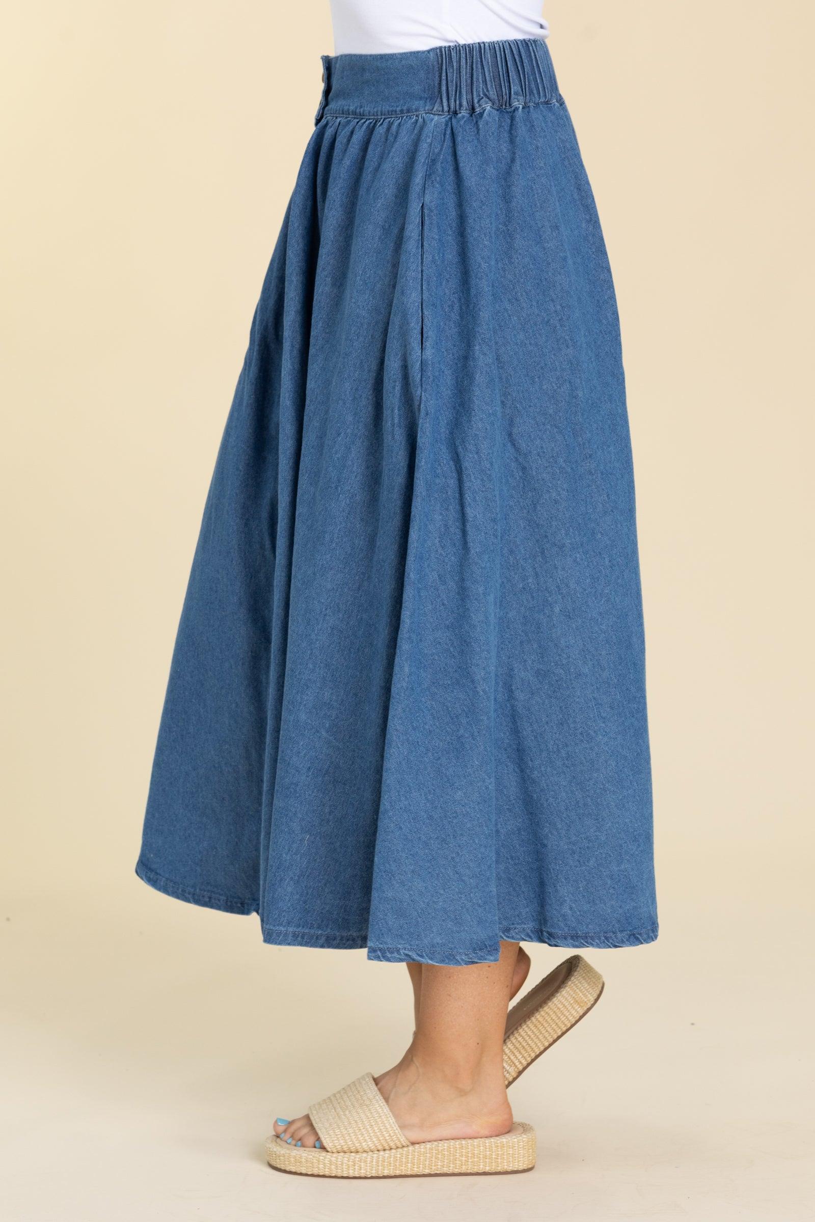 Denim Button Up Solid Knit Skirt