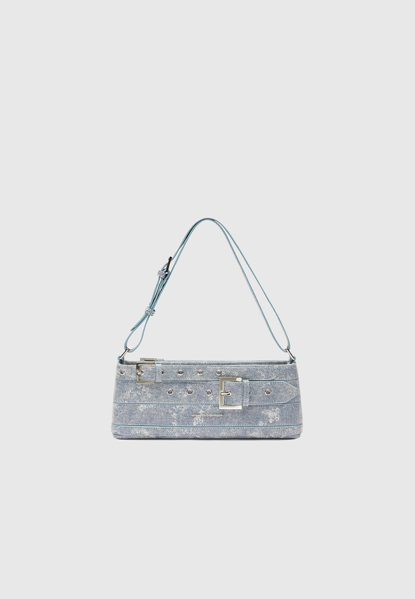 Keep your daily essentials stylishly close with this Denim Effect Eiffel Belt Bag. Featuring multi belt strap detailing, this bag is designed to provide comfort and convenience. It's the ideal accessory for any wardrobe. Handbag Silhouette Multi Belt Strap Detailing Zip Fastening Spacious Rectangular Design Adjustable Strap Silver Manière De Voir Eiffel Hardware 80% PVC, 20% PolyesterAlways check the care label for wash instructions.