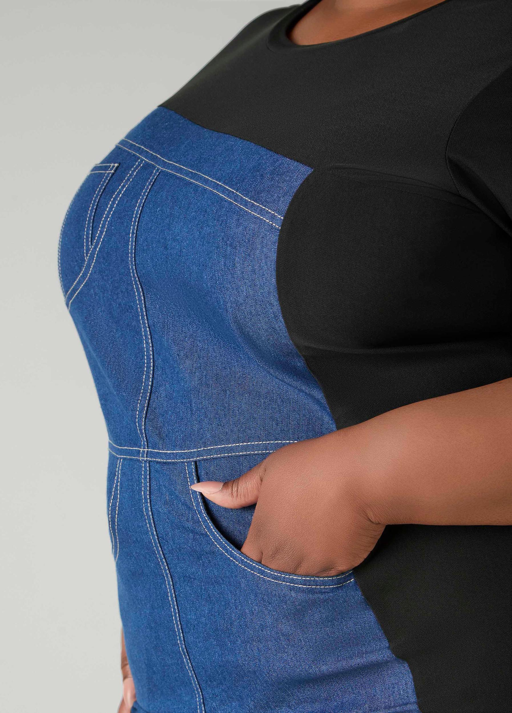Denim Paneled Sheath Dress