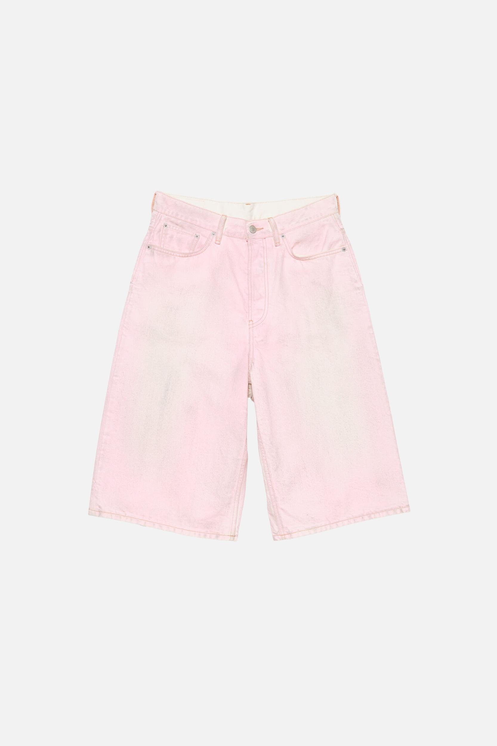 Denim shorts are cut to a loose fit with a mid/low waist, straight leg and knee length. Crafted from non-stretch denim with a leather patch. FN-MN-SHOR000290