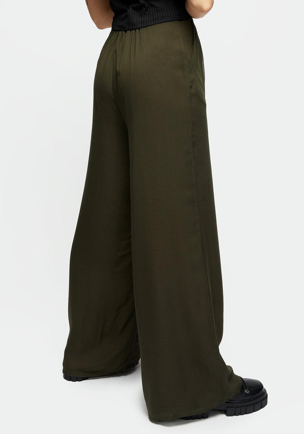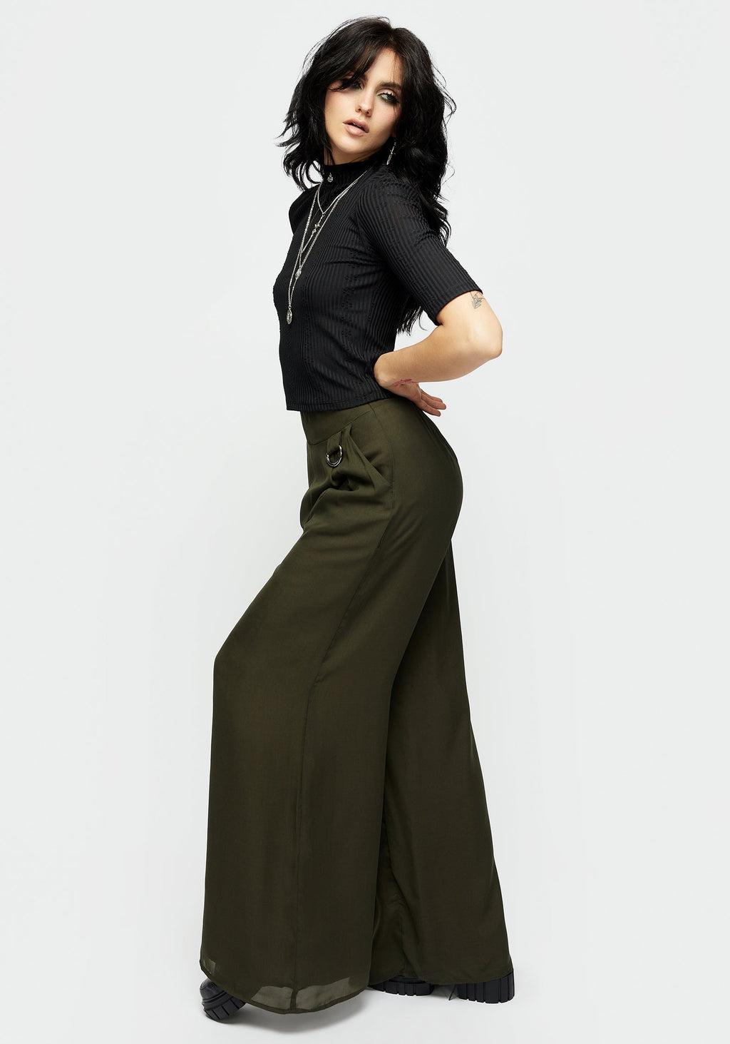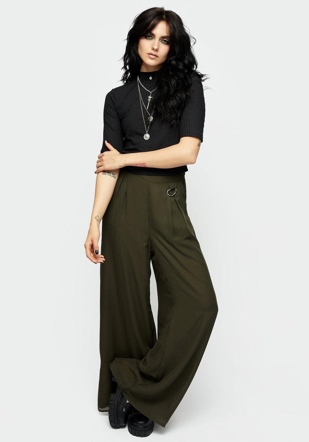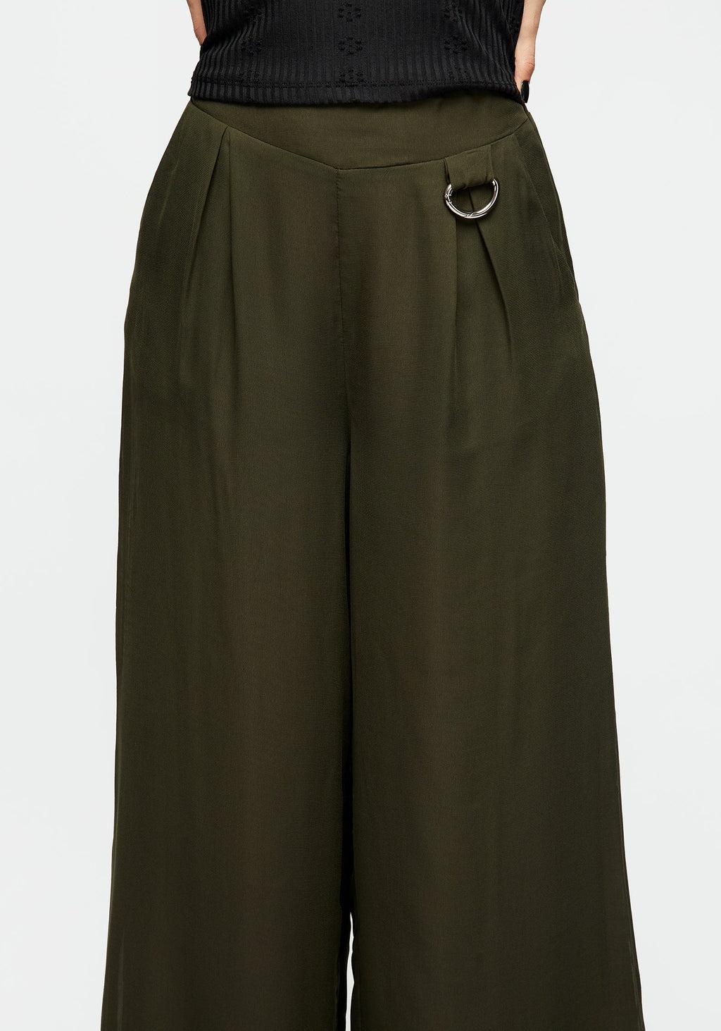 Nowhere to go but down- Green lined chiffon wide-legged culottes - Wide self-fabric high-rise waistband with back elastication for comfort - Wide, roomy legs to take drama to the max - Removeable D-ring at hip for chains, keys, or simply for decoration- Two handy pockets for essentials - Floaty sheer chiffon overlays a solid breathable lining (non-stretch) - Add chunky sandals for a breezy summertime look - How’s the weather down there? Main: 100% polyesterLining: 100% rayon